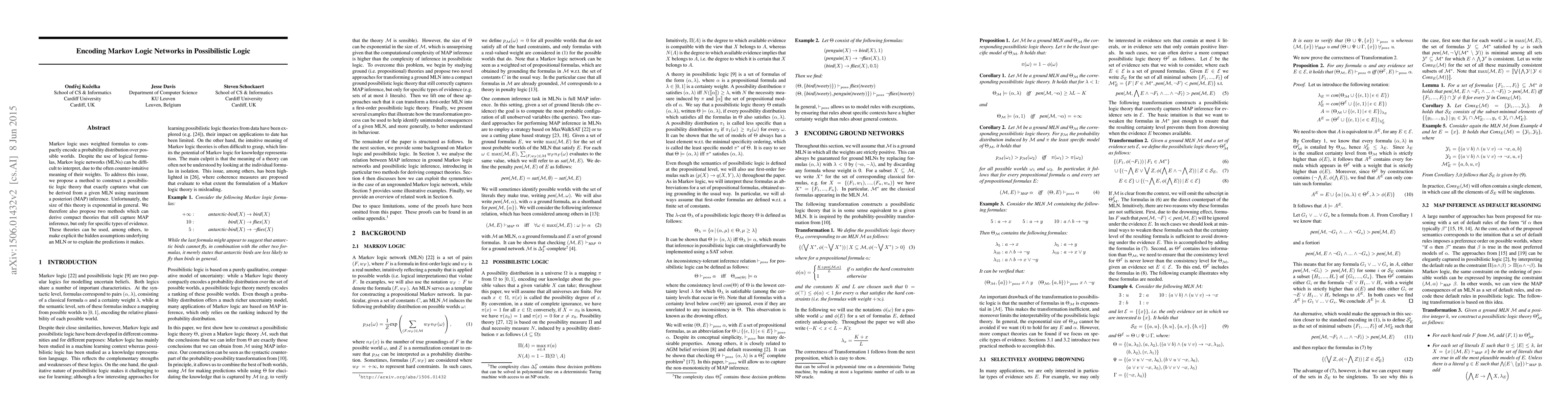 The paper proposes encoding Markov Logic Networks (MLNs) in possibilistic logic to address the interpretability issues of MLNs by constructing a possibilistic logic theory that captures MAP inference, with methods for deriving compact theories for specific evidence types.