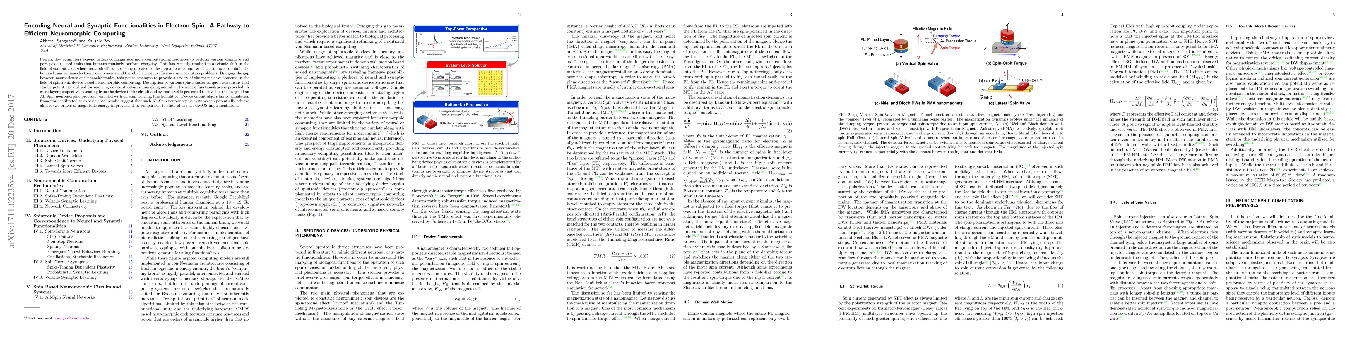 This paper reviews recent advancements in spintronic devices for neuromorphic computing, focusing on spin-transfer torque mechanisms to emulate neural and synaptic functionalities. It proposes a cross-layer design for an All-Spin neuromorphic processor with on-chip learning capabilities, promising significant energy efficiency improvements over traditional CMOS systems.