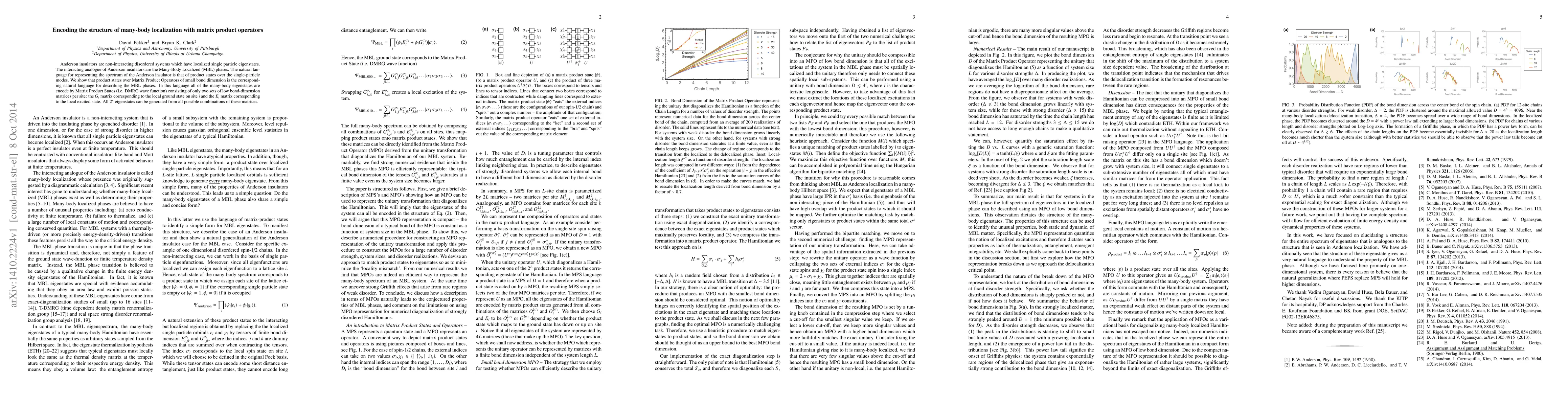 This paper demonstrates that Matrix Product Operators (MPOs) can represent Many-Body Localized (MBL) phases, analogous to how product states describe Anderson insulators. The MBL eigenstates are encoded in Matrix Product States (MPS) using two sets of low bond-dimension matrices per site, corresponding to local ground and excited states.