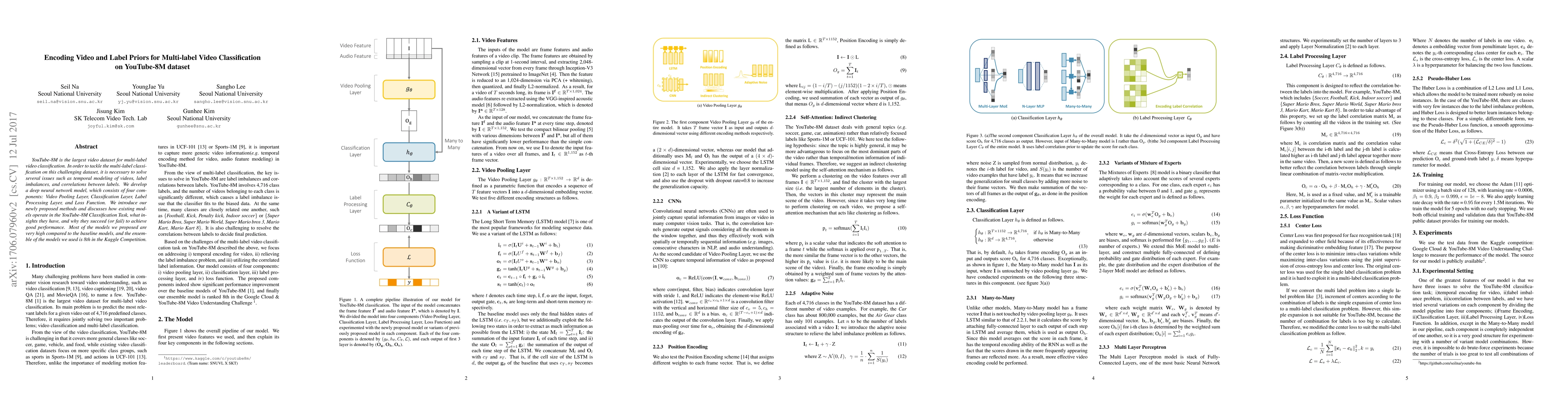 YouTube-8M is the largest video dataset for multi-label video classification. In order to tackle the multi-label classification on this challenging dataset, it is necessary to solve several issues such as temporal modeling of videos, label imbalances, and correlations between labels. We develop a deep neural network model, which consists of four components: the frame encoder, the classification layer, the label processing layer, and the loss function. We introduce our newly proposed methods and discusses how existing models operate in the YouTube-8M Classification Task, what insights they have, and why they succeed (or fail) to achieve good performance. Most of the models we proposed are very high compared to the baseline models, and the ensemble of the models we used is 8th in the Kaggle Competition.