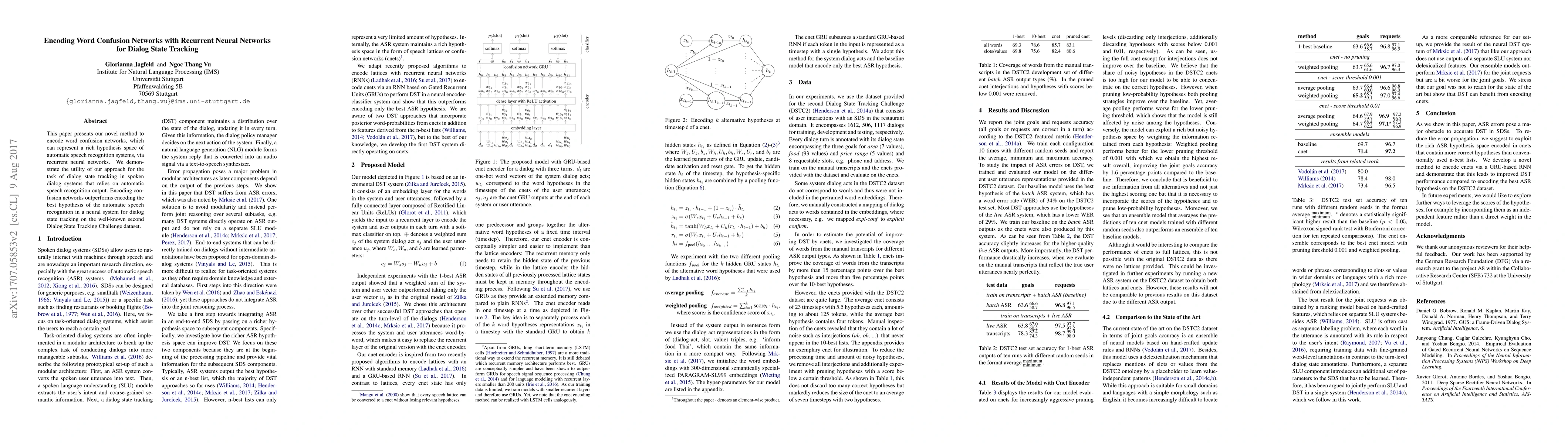 This paper introduces a method to encode word confusion networks using recurrent neural networks for dialog state tracking in spoken dialog systems. The proposed approach outperforms traditional methods that rely solely on the best automatic speech recognition hypothesis, as demonstrated on the second Dialog State Tracking Challenge dataset.