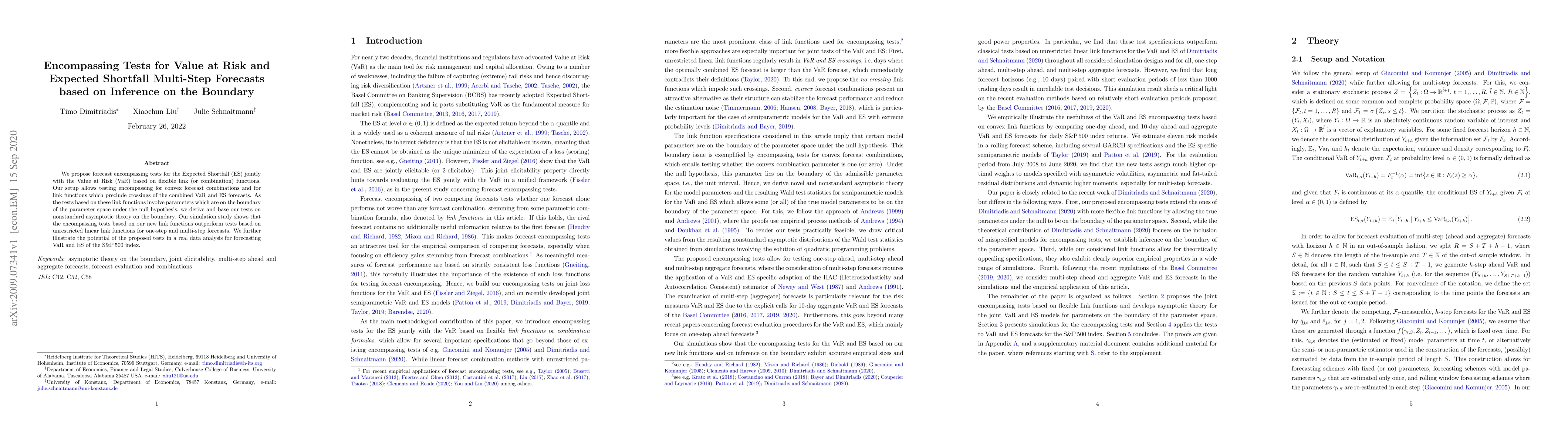 Researchers developed new tests to evaluate forecasts for Value at Risk (VaR) and Expected Shortfall (ES), finding they outperform existing methods in accuracy; the tests utilize nonstandard asymptotic theory on the boundary of the parameter space.