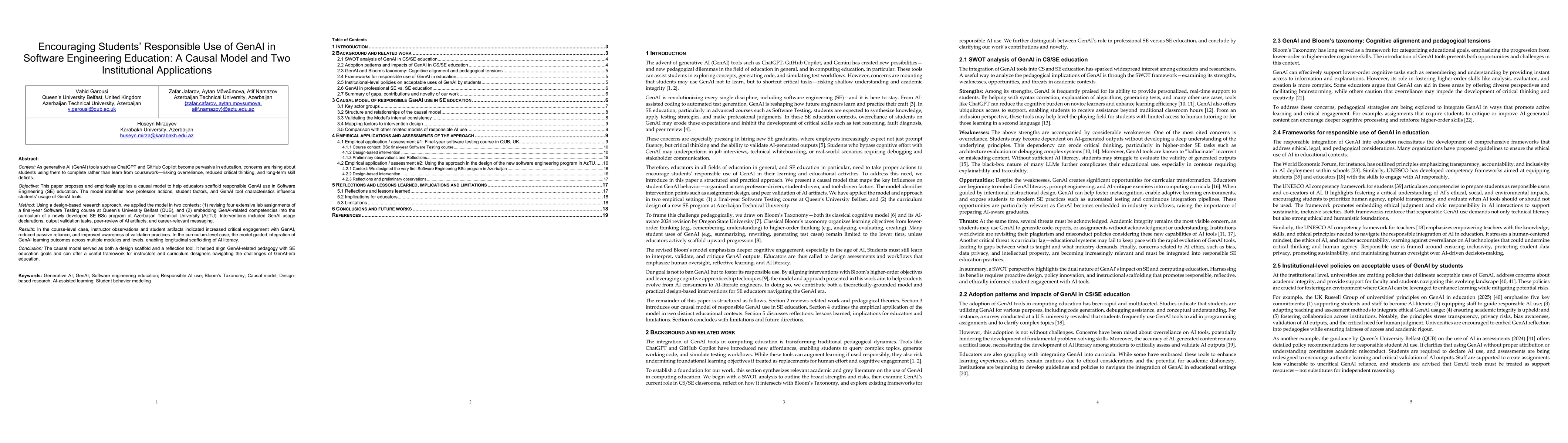 Researchers developed a causal model to encourage responsible use of generative AI tools in software engineering education, finding increased critical engagement and improved awareness among students.