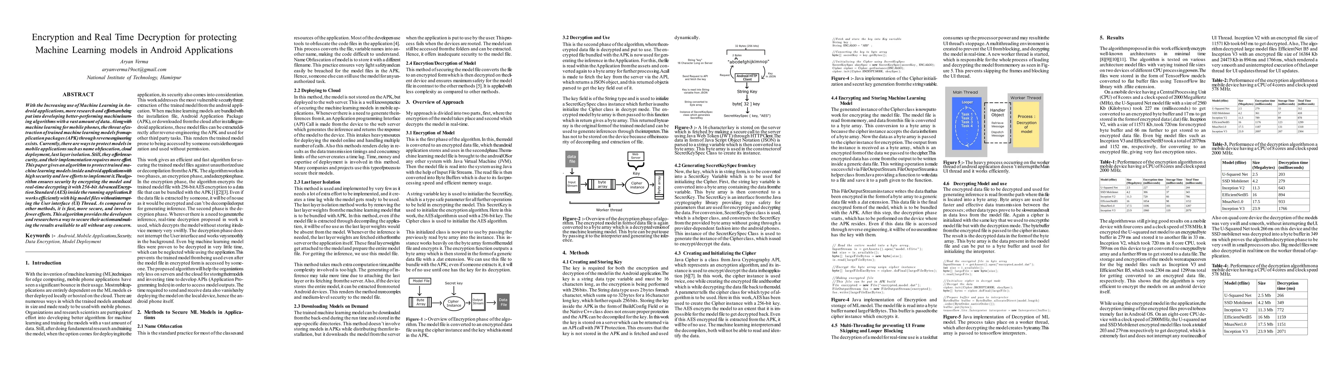 Researchers developed an algorithm to protect machine learning models in Android apps with high security and low effort using 256-bit AES encryption and real-time decryption. It ensures fast performance without interrupting the User Interface (UI) Thread.