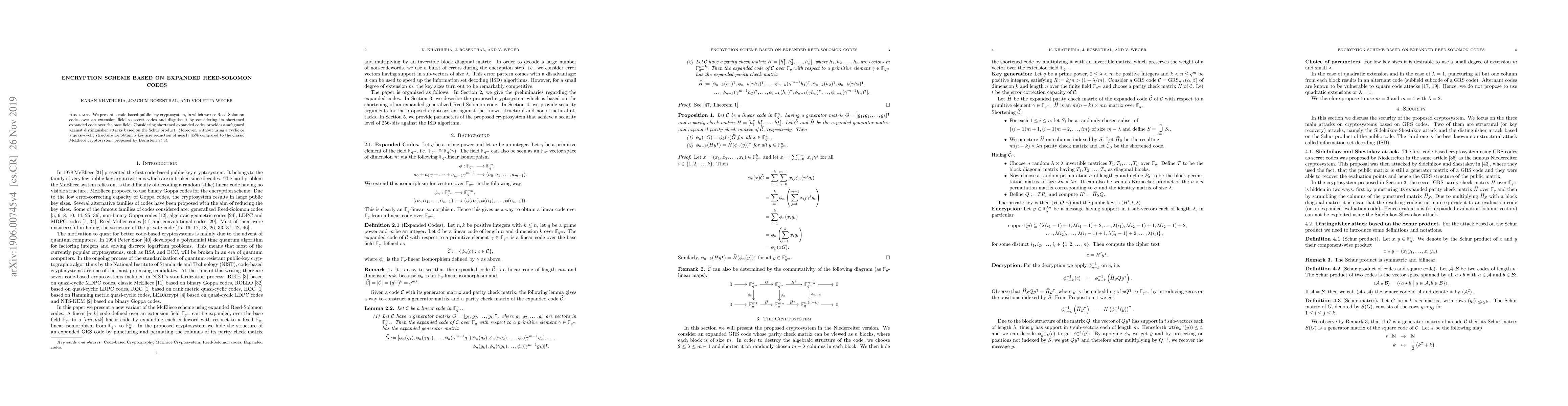 Researchers developed a more efficient encryption scheme based on expanded Reed-Solomon codes, reducing key size by nearly 45% compared to the classic McEliece cryptosystem.