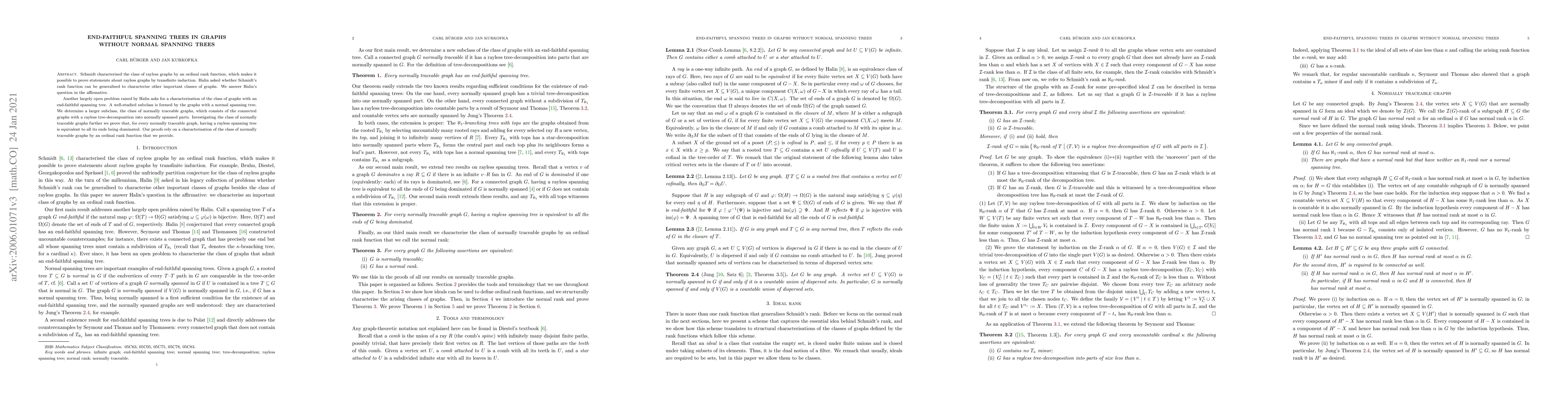 This paper answers Halin's question by generalising Schmidt's ordinal rank function to characterise normally traceable graphs, which are connected graphs with a rayless tree-decomposition into normally spanned parts. It proves that a normally traceable graph has a rayless spanning tree if and only if all its ends are dominated.
