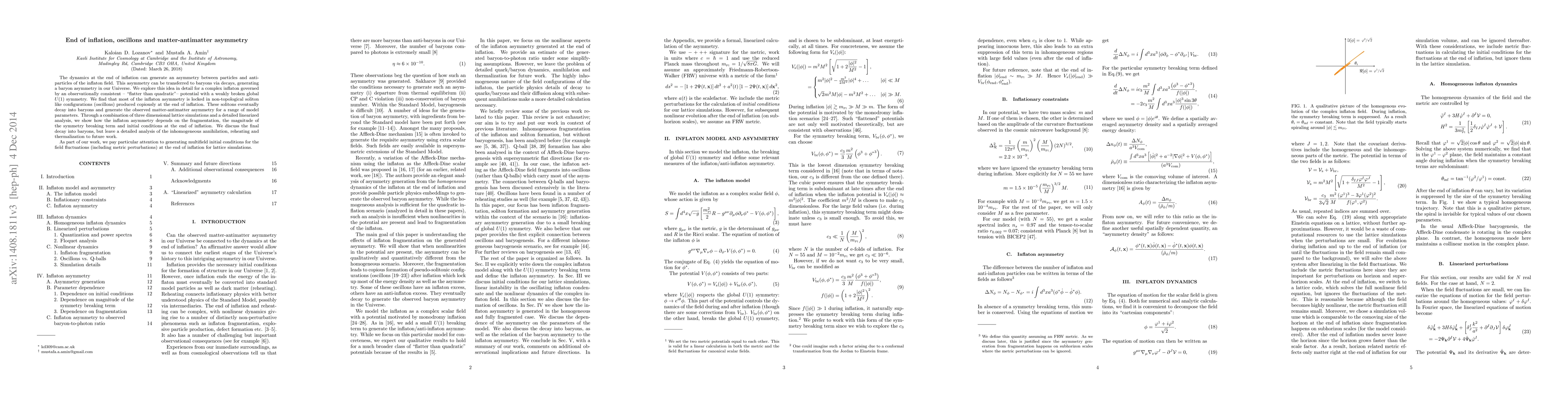 The dynamics at the end of inflation can generate an asymmetry between particles and anti-particles of the inflaton field. This asymmetry can be transferred to baryons via decays, generating a baryon asymmetry in our Universe. We explore this idea in detail for a complex inflaton governed by an observationally consistent -"flatter than quadratic"- potential with a weakly broken global U(1) symmetry. We find that most of the inflaton asymmetry is locked in non-topological soliton like configurations (oscillons) produced copiously at the end of inflation. These solitons eventually decay into baryons and generate the observed matter-antimatter asymmetry for a range of model parameters. Through a combination of three dimensional lattice simulations and a detailed linearized analysis, we show how the inflaton asymmetry depends on the fragmentation, the magnitude of the symmetry breaking term and initial conditions at the end of inflation. We discuss the final decay into baryons, but leave a detailed analysis of the inhomogeneous annihilation, reheating and thermalization to future work. As part of our work, we pay particular attention to generating multifield initial conditions for the field fluctuations (including metric perturbations) at the end of inflation for lattice simulations.