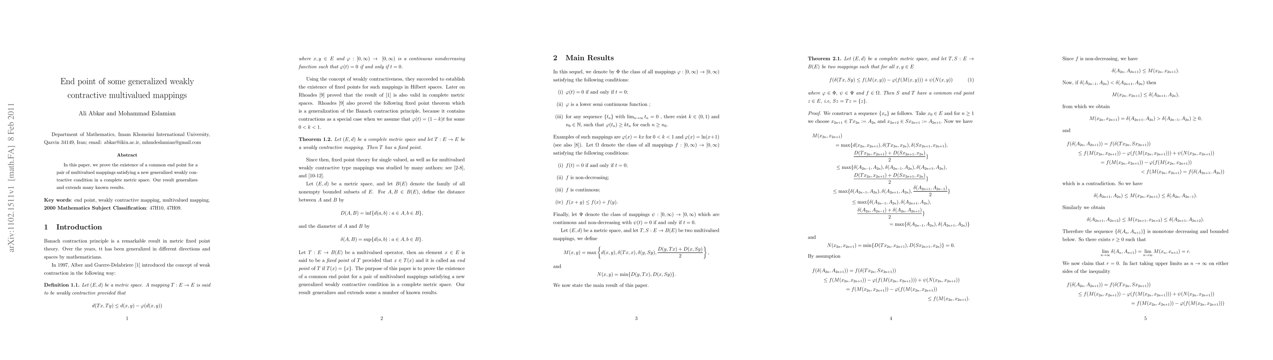 This paper establishes the existence of a common end point for generalized weakly contractive multivalued mappings in complete metric spaces, extending previous results and introducing a new contractive condition.