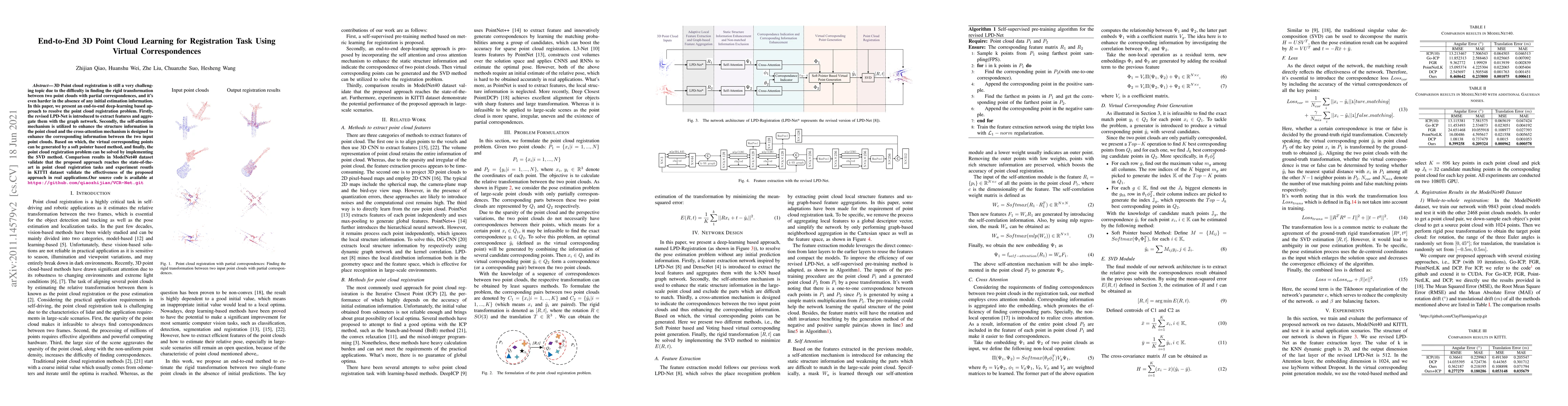 This paper proposes an end-to-end deep learning method for 3D point cloud registration using virtual correspondences, leveraging LPD-Net and graph networks for feature extraction, self-attention for structure enhancement, and a soft pointer to generate virtual points. The method achieves state-of-the-art results on ModelNet40 and demonstrates effectiveness in real-world applications using the KITTI dataset.