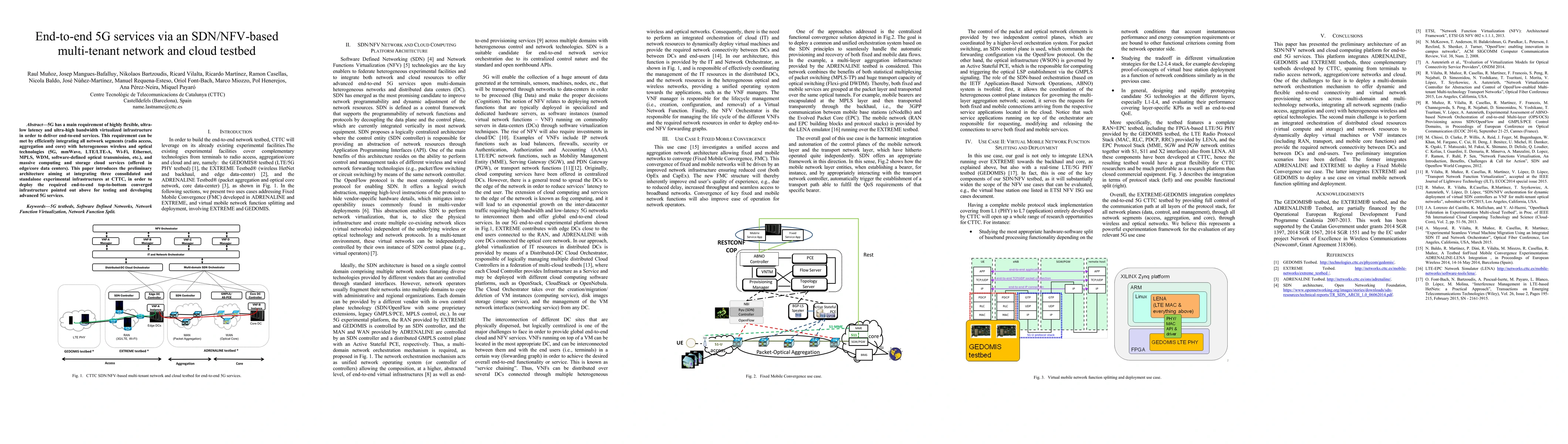 This paper proposes an architecture for integrating SDN/NFV-based multi-tenant networks with cloud services to create a flexible, low-latency 5G infrastructure. It aims to combine various wireless and optical technologies for testing advanced 5G services through a cloud testbed.
