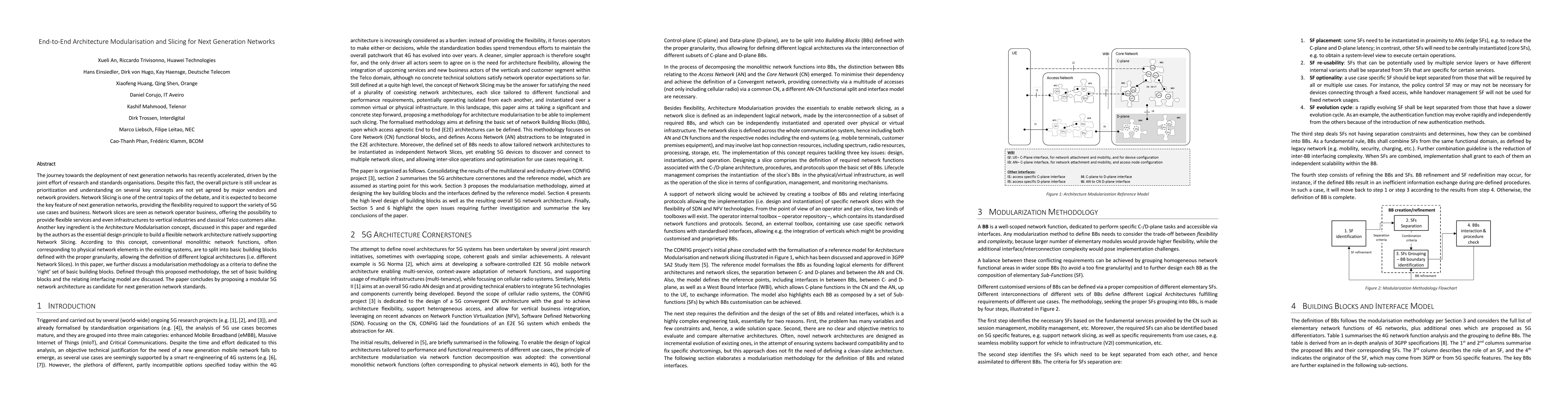 This paper explores the modularisation and slicing of architecture for next generation networks, emphasizing the importance of flexible network architecture for supporting network slicing. It proposes a methodology for defining basic building blocks and interfaces, aiming to create a modular 5G network architecture that can flexibly cater to diverse 5G use cases.