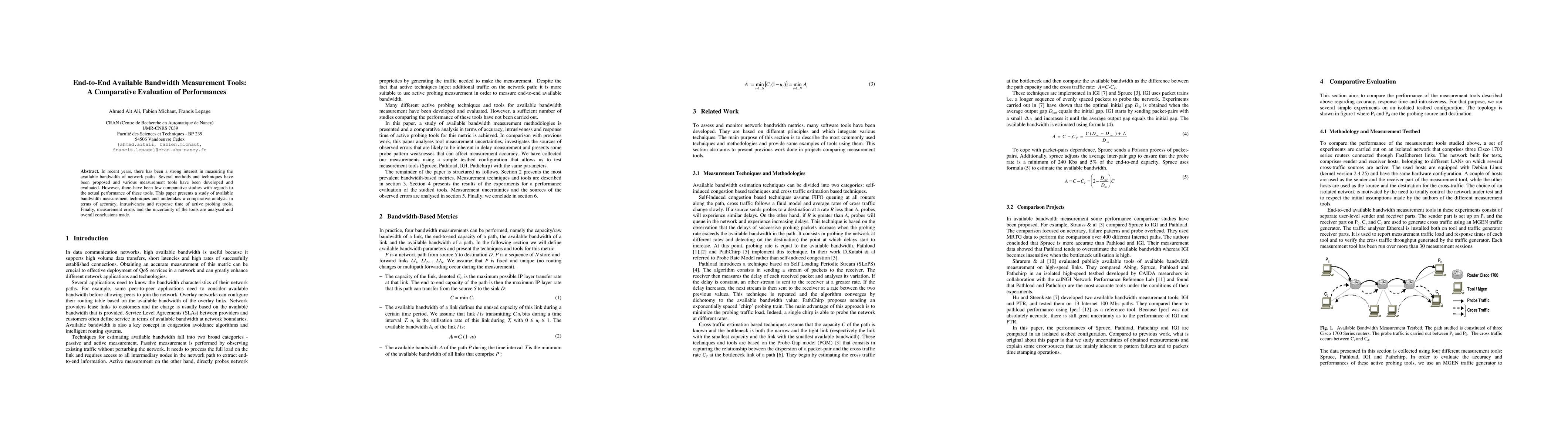 This paper evaluates various end-to-end available bandwidth measurement tools, comparing their accuracy, intrusiveness, and response time. It also analyzes measurement errors and uncertainty, providing comprehensive conclusions on tool performance.