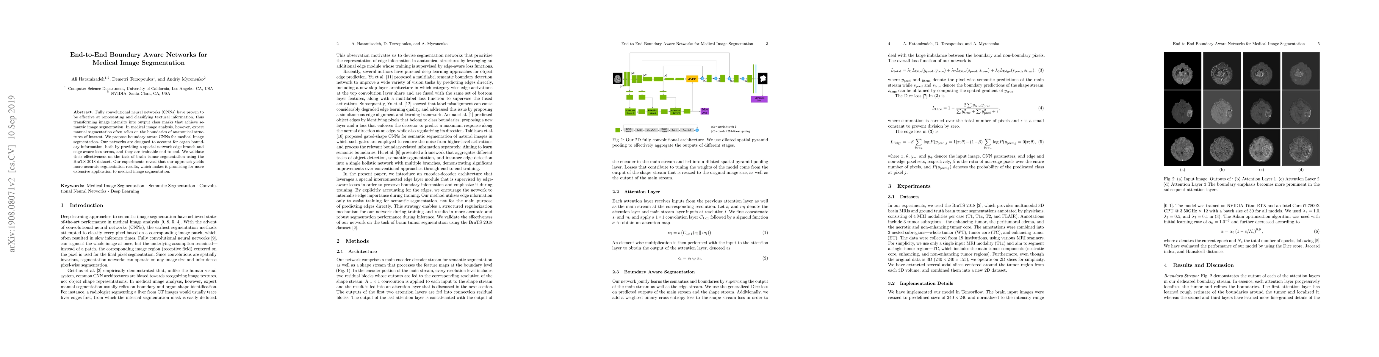 This paper proposes boundary aware CNNs for enhancing medical image segmentation, incorporating special network branches and edge-aware loss terms to focus on anatomical structure boundaries. The end-to-end network is validated on brain tumor segmentation, showing improved accuracy compared to conventional methods.