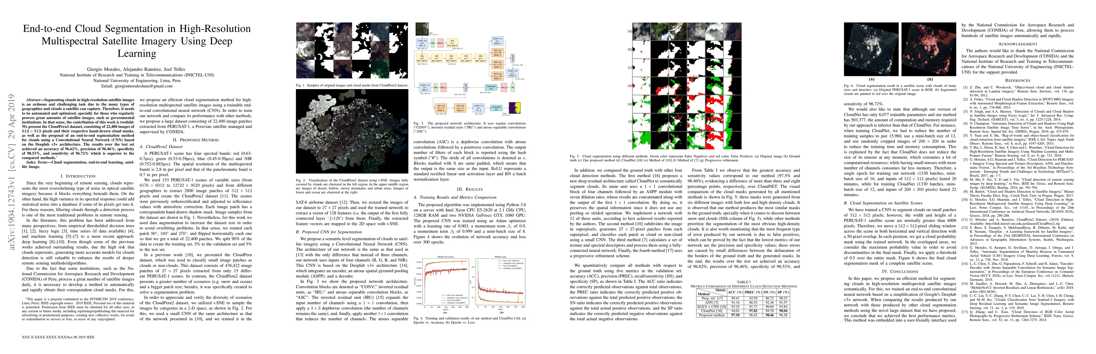 Researchers developed an end-to-end cloud segmentation method for high-resolution multispectral satellite imagery using a Convolutional Neural Network (CNN) with 96.62% accuracy.