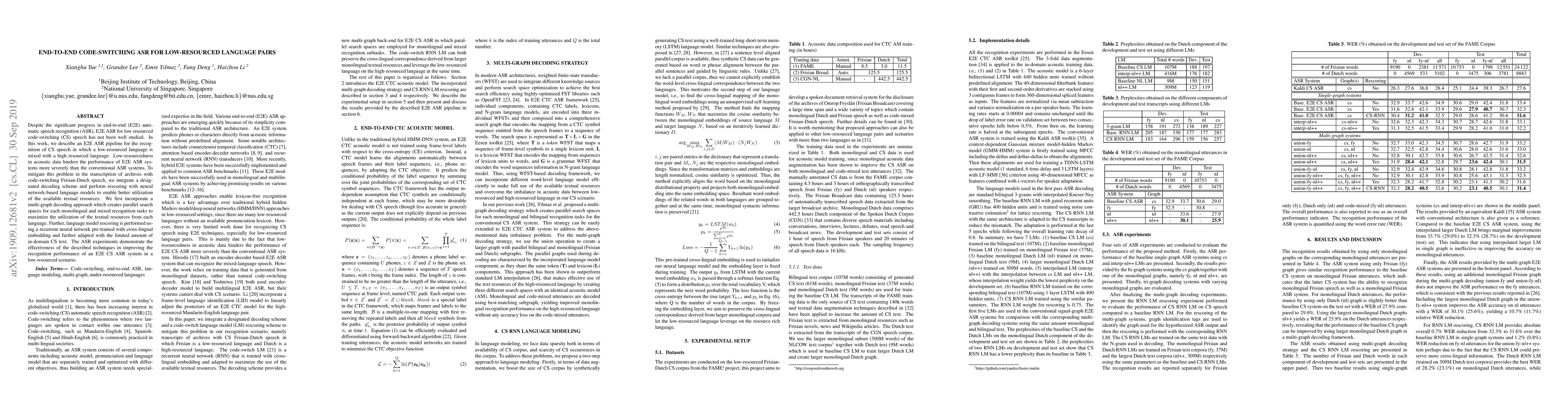 This paper presents an end-to-end ASR pipeline for recognizing code-switching speech between low-resourced and high-resourced languages, specifically Frisian-Dutch. The approach employs a multi-graph decoding scheme and neural network-based language model rescoring to enhance performance in low-resourced scenarios.
