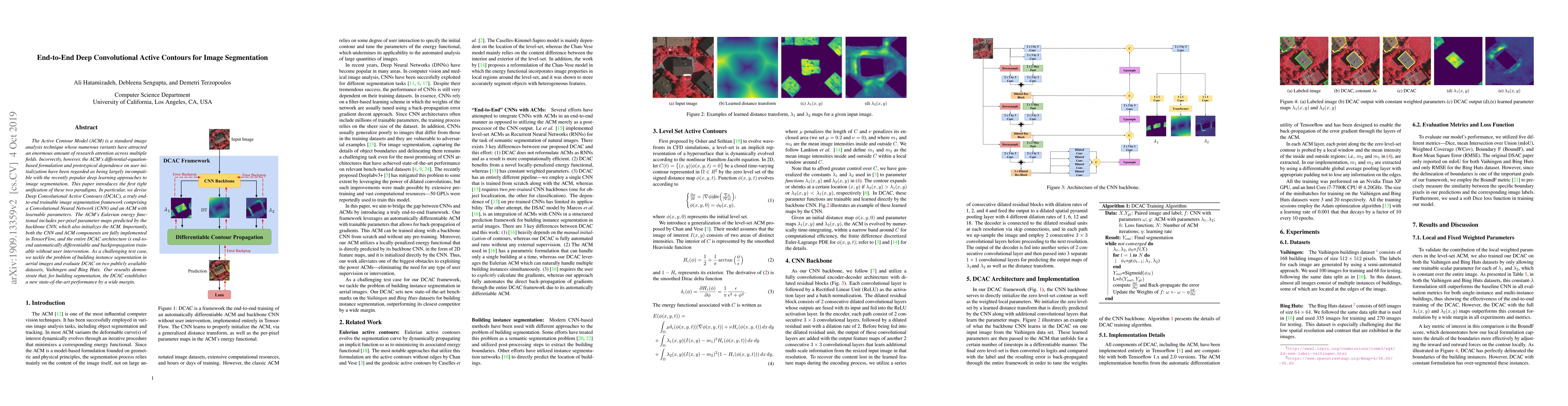 The Active Contour Model (ACM) is a standard image analysis technique whose numerous variants have attracted an enormous amount of research attention across multiple fields. Incorrectly, however, the ACM's differential-equation-based formulation and prototypical dependence on user initialization have been regarded as being largely incompatible with the recently popular deep learning approaches to image segmentation. This paper introduces the first tight unification of these two paradigms. In particular, we devise Deep Convolutional Active Contours (DCAC), a truly end-to-end trainable image segmentation framework comprising a Convolutional Neural Network (CNN) and an ACM with learnable parameters. The ACM's Eulerian energy functional includes per-pixel parameter maps predicted by the backbone CNN, which also initializes the ACM. Importantly, both the CNN and ACM components are fully implemented in TensorFlow, and the entire DCAC architecture is end-to-end automatically differentiable and backpropagation trainable without user intervention. As a challenging test case, we tackle the problem of building instance segmentation in aerial images and evaluate DCAC on two publicly available datasets, Vaihingen and Bing Huts. Our reseults demonstrate that, for building segmentation, the DCAC establishes a new state-of-the-art performance by a wide margin.