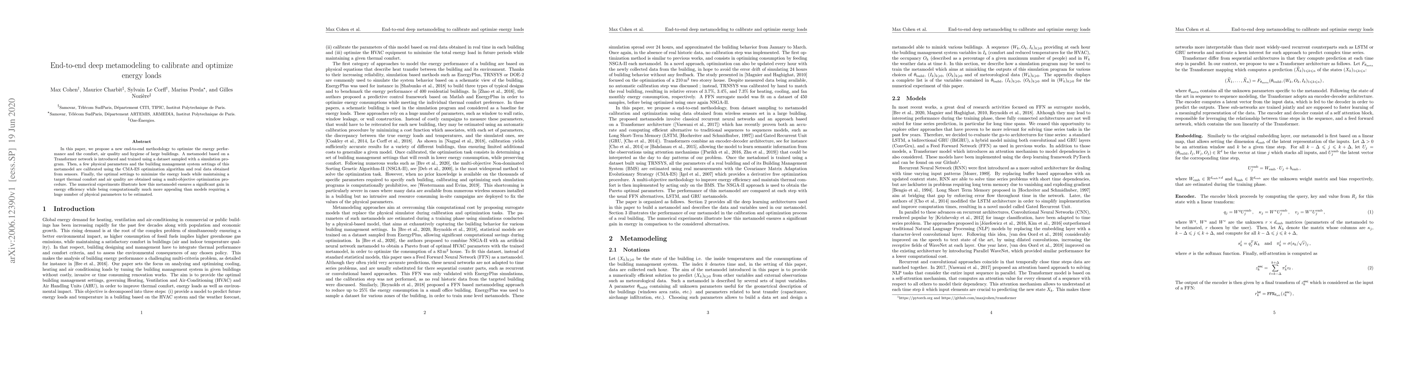 This paper introduces an end-to-end deep metamodeling approach using a Transformer network to optimize energy performance in large buildings, calibrated and optimized via CMA-ES and multi-objective procedures. The methodology achieves significant energy efficiency gains while being computationally efficient.