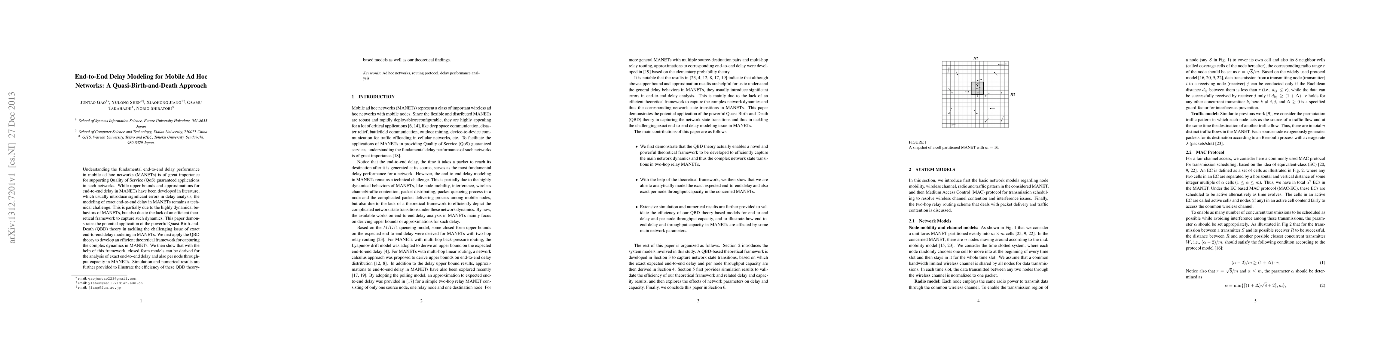 This paper applies Quasi-Birth-and-Death (QBD) theory to develop an efficient framework for modeling exact end-to-end delay in dynamic mobile ad hoc networks (MANETs), providing closed-form models for delay and throughput, validated by simulations.