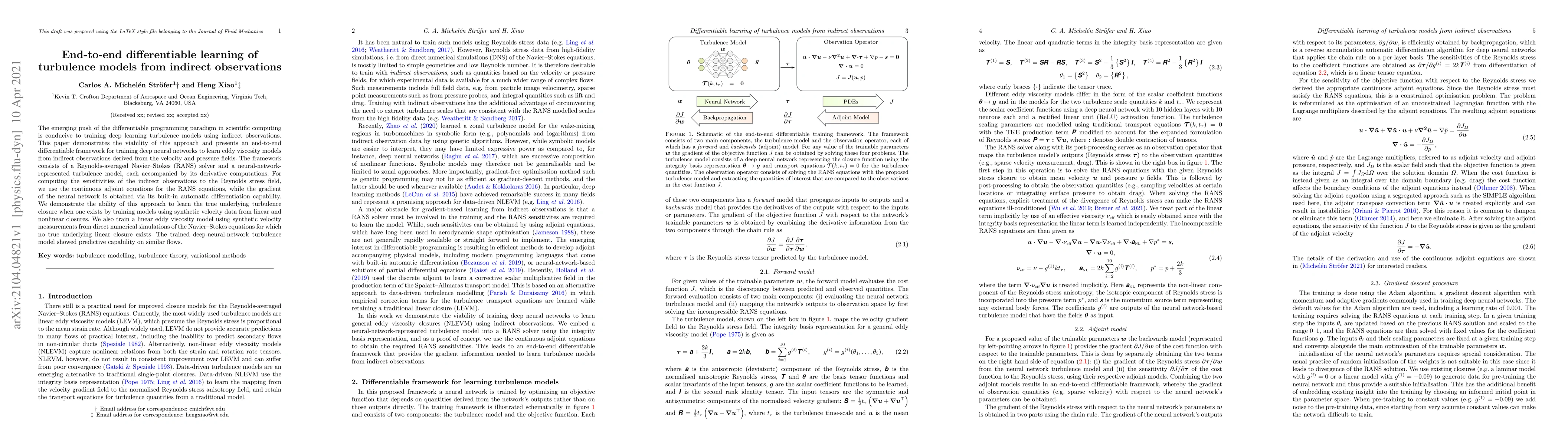 This paper introduces a differentiable framework for training deep neural networks to learn turbulence models from indirect observations, combining a Reynolds-averaged Navier-Stokes solver with a neural-network-based turbulence model. The approach demonstrates successful learning of turbulence closures from synthetic data and shows predictive capability on similar flows.