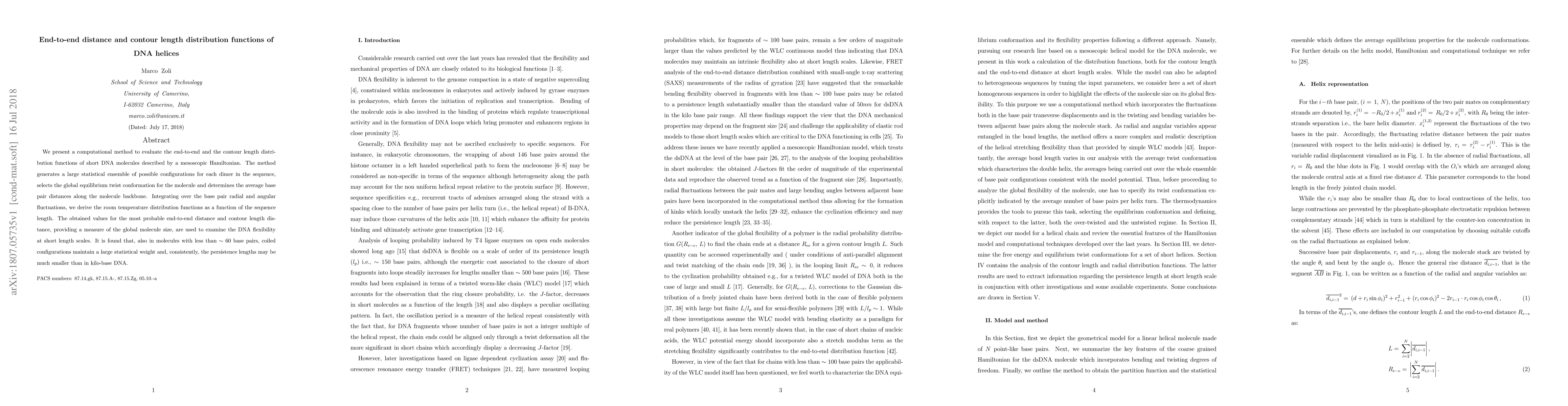 This paper introduces a computational method to evaluate the end-to-end and contour length distribution functions of short DNA helices, revealing that coiled configurations maintain a large statistical weight even in molecules with fewer than 60 base pairs, suggesting smaller persistence lengths compared to longer DNA.
