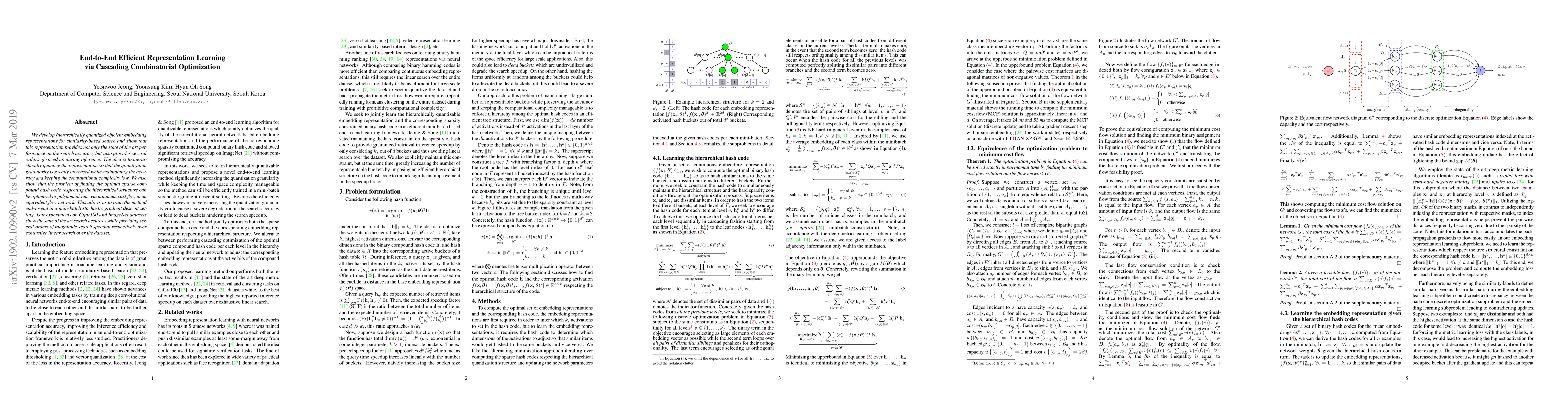 We develop hierarchically quantized efficient embedding representations for similarity-based search and show that this representation provides not only the state of the art performance on the search accuracy but also provides several orders of speed up during inference. The idea is to hierarchically quantize the representation so that the quantization granularity is greatly increased while maintaining the accuracy and keeping the computational complexity low. We also show that the problem of finding the optimal sparse compound hash code respecting the hierarchical structure can be optimized in polynomial time via minimum cost flow in an equivalent flow network. This allows us to train the method end-to-end in a mini-batch stochastic gradient descent setting. Our experiments on Cifar100 and ImageNet datasets show the state of the art search accuracy while providing several orders of magnitude search speedup respectively over exhaustive linear search over the dataset.