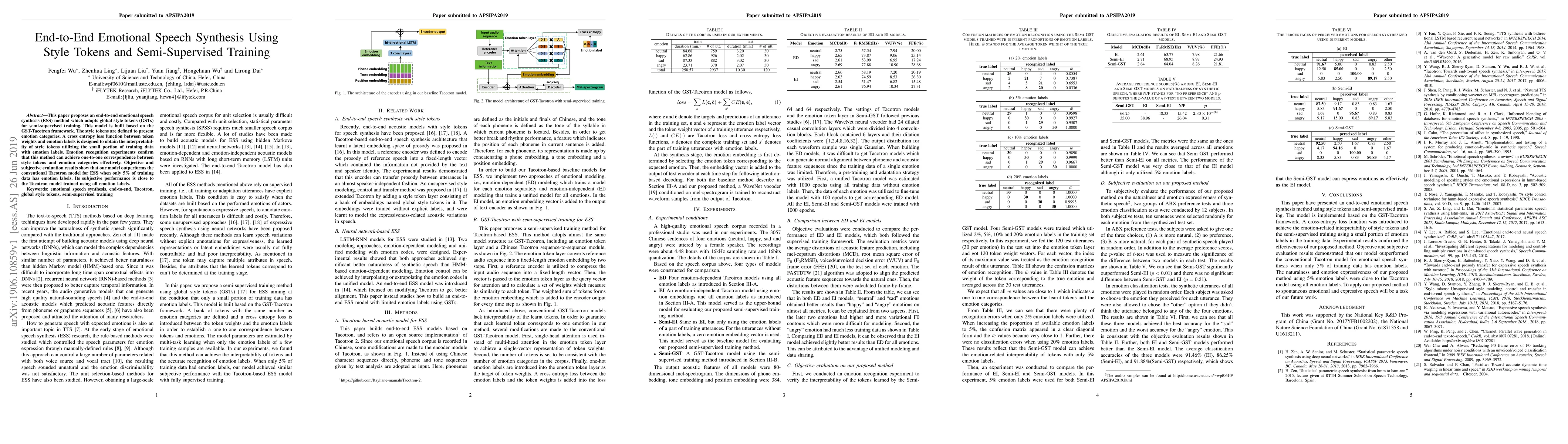 This paper presents an end-to-end emotional speech synthesis model using global style tokens for semi-supervised training, achieving effective one-to-one correspondence between tokens and emotion categories, outperforming conventional models even with limited labeled data.