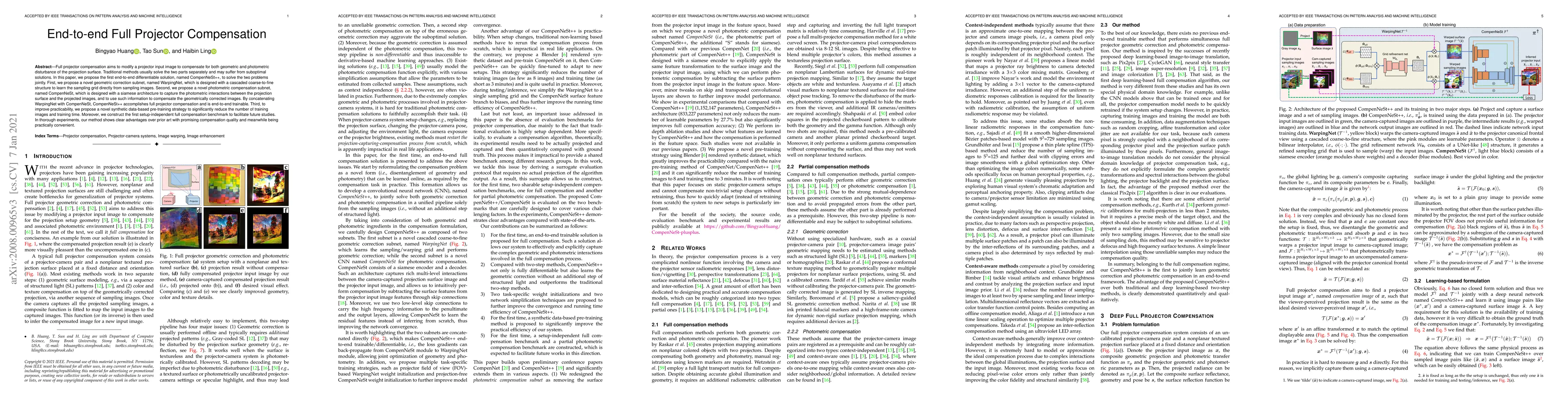 The method, called CompenNeSt++, is end-to-end trainable and uses synthetic data pre-training to improve practicability, setting a new standard for full projector compensation.