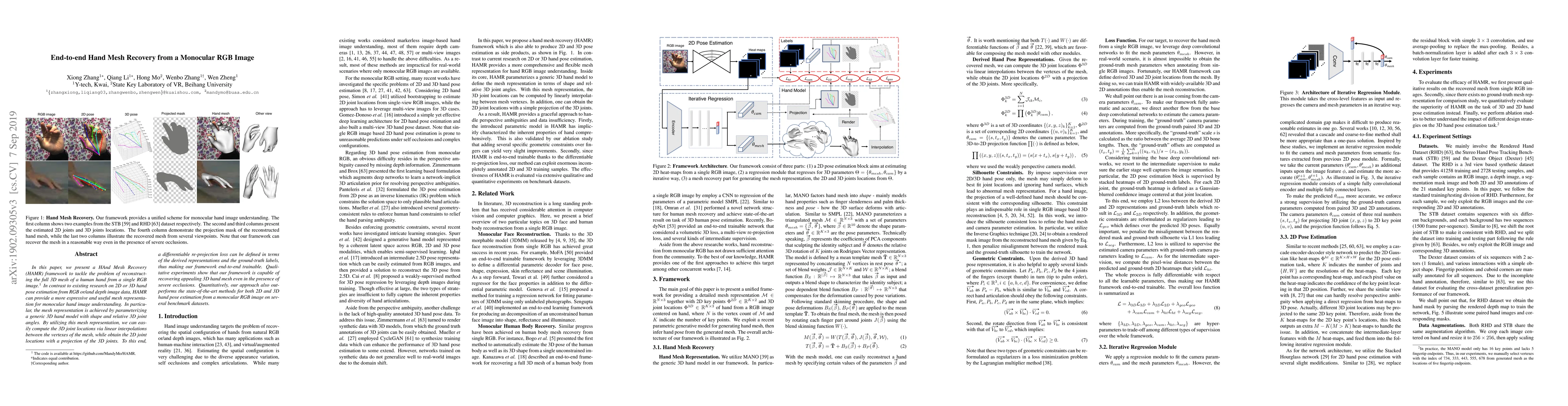 This paper introduces the HAnd Mesh Recovery (HAMR) framework for reconstructing the full 3D mesh of a human hand from a single RGB image, outperforming existing methods for both 2D and 3D hand pose estimation. The framework uses a parameterized 3D hand model and differentiable re-projection loss for end-to-end training, achieving high accuracy even with severe occlusions.