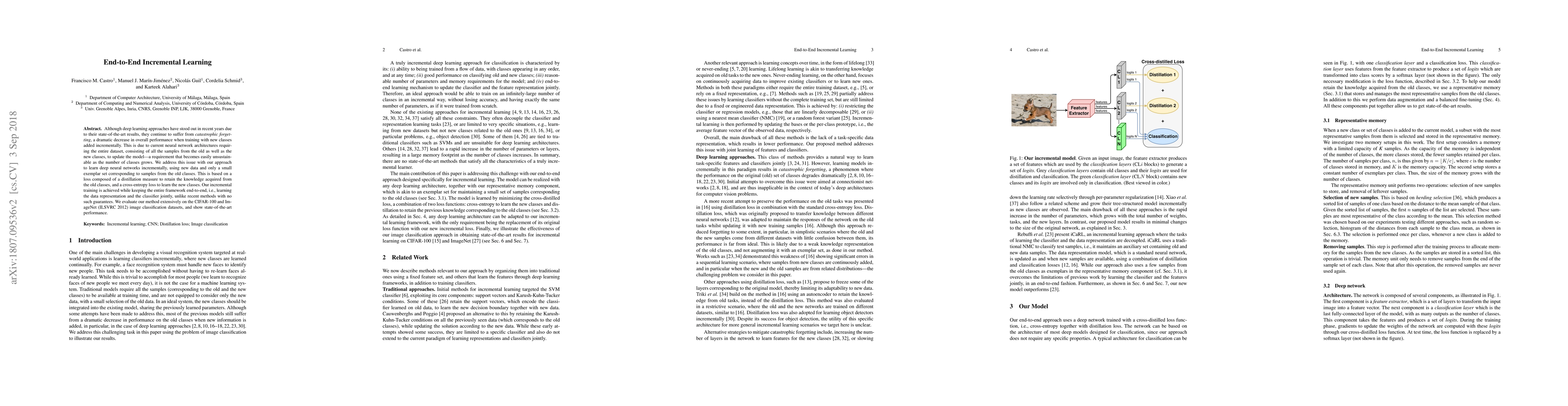 Researchers propose an approach to incremental learning for deep neural networks, addressing catastrophic forgetting by retaining knowledge from old classes using a distillation measure while learning new classes with cross-entropy loss. The method achieves state-of-the-art performance on multiple image classification datasets.