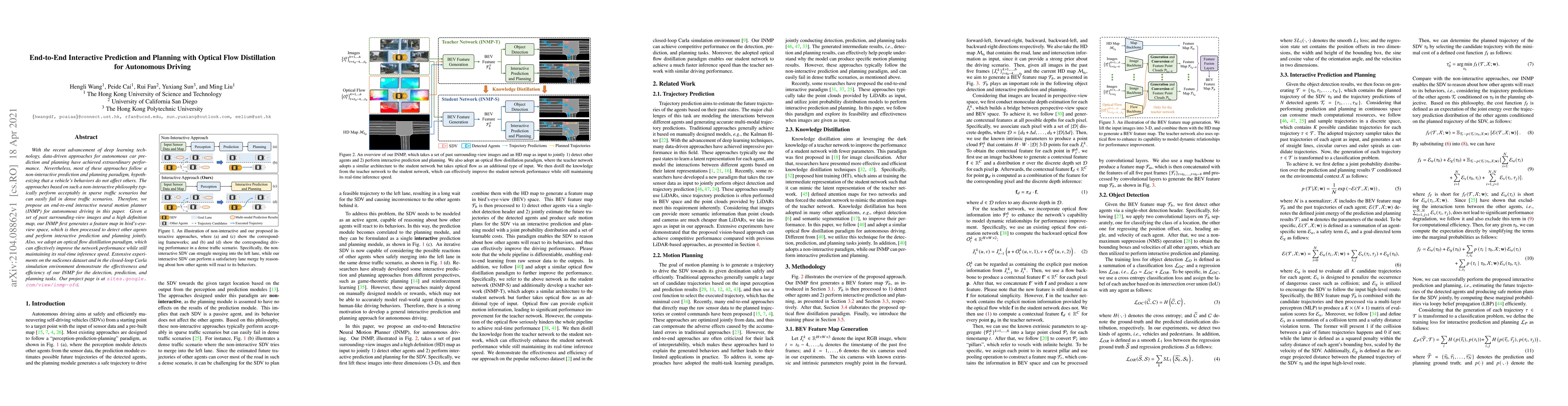This paper proposes an end-to-end interactive neural motion planner (INMP) for autonomous driving that incorporates optical flow distillation to enhance performance. The model jointly performs interactive prediction and planning by considering the mutual influence of vehicle behaviors, demonstrating effectiveness in dense traffic scenarios.