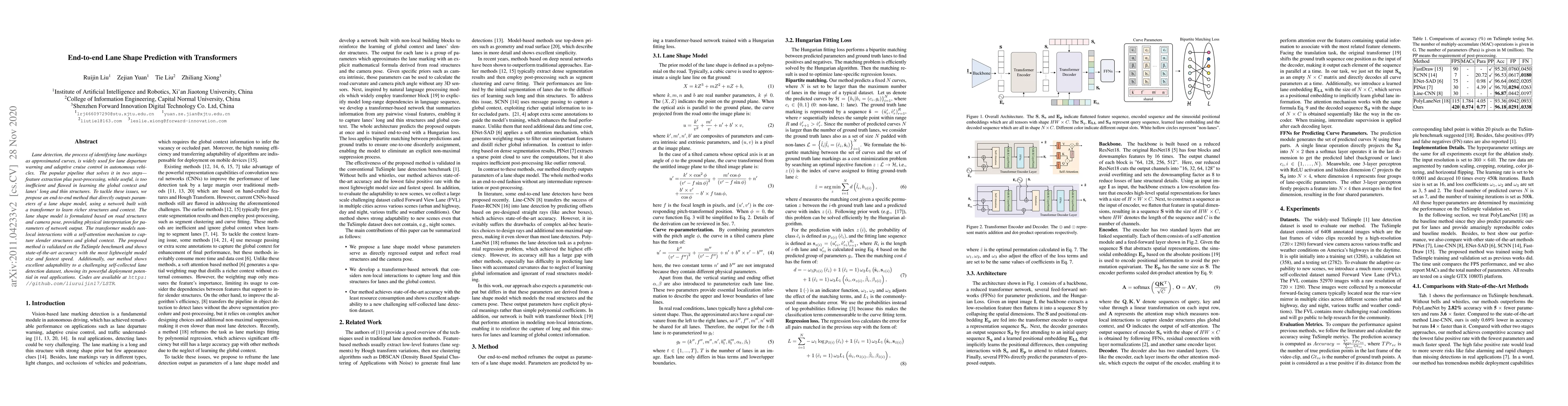 This paper proposes an end-to-end transformer-based method for lane shape prediction in autonomous vehicles, directly outputting parameters of a lane shape model to capture global context and slender structures. The method achieves state-of-the-art accuracy and speed on benchmark datasets, demonstrating strong real-world deployment potential.