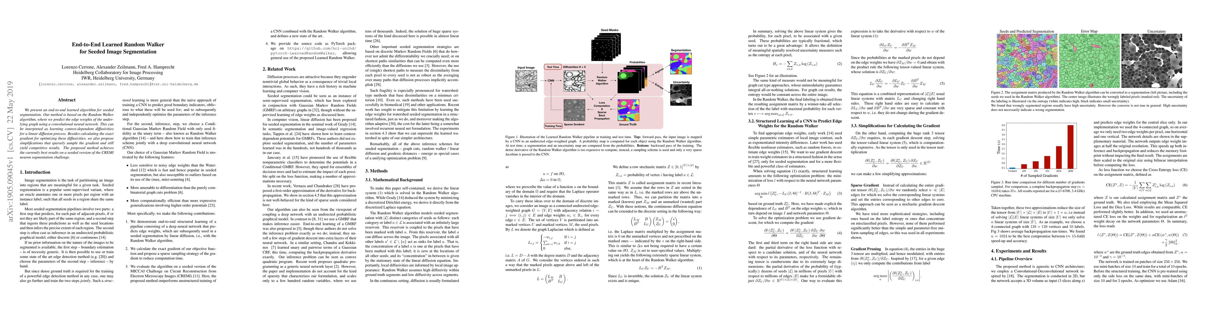 This paper introduces an end-to-end learned algorithm for seeded image segmentation based on the Random Walker method, utilizing a convolutional neural network to predict edge weights. The method achieves state-of-the-art results on a seeded neuron segmentation challenge.