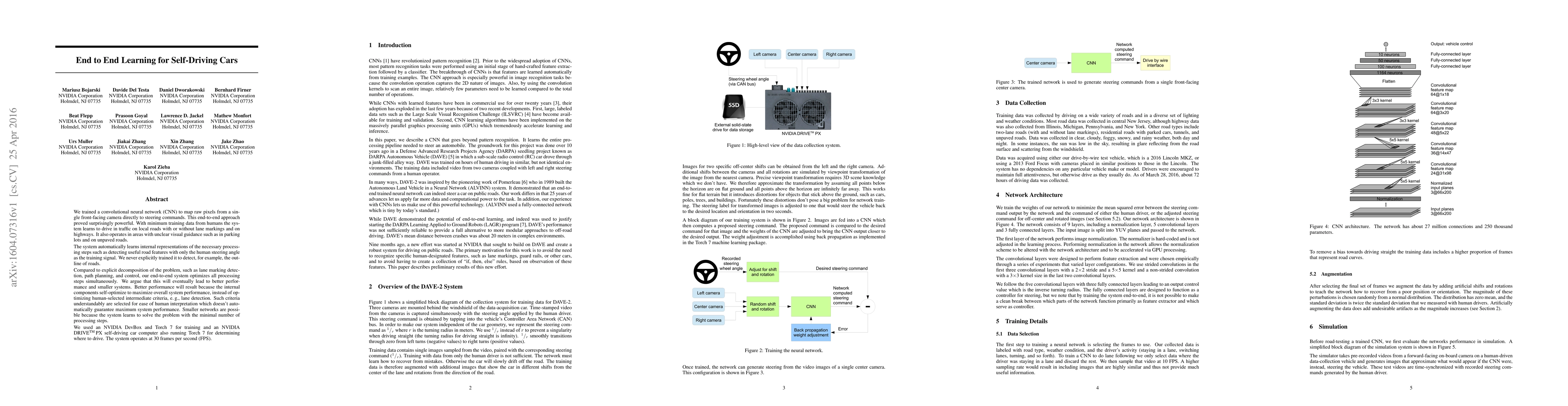 Researchers developed an end-to-end convolutional neural network that can drive a car without explicit lane marking detection or path planning, achieving impressive performance with minimal training data.