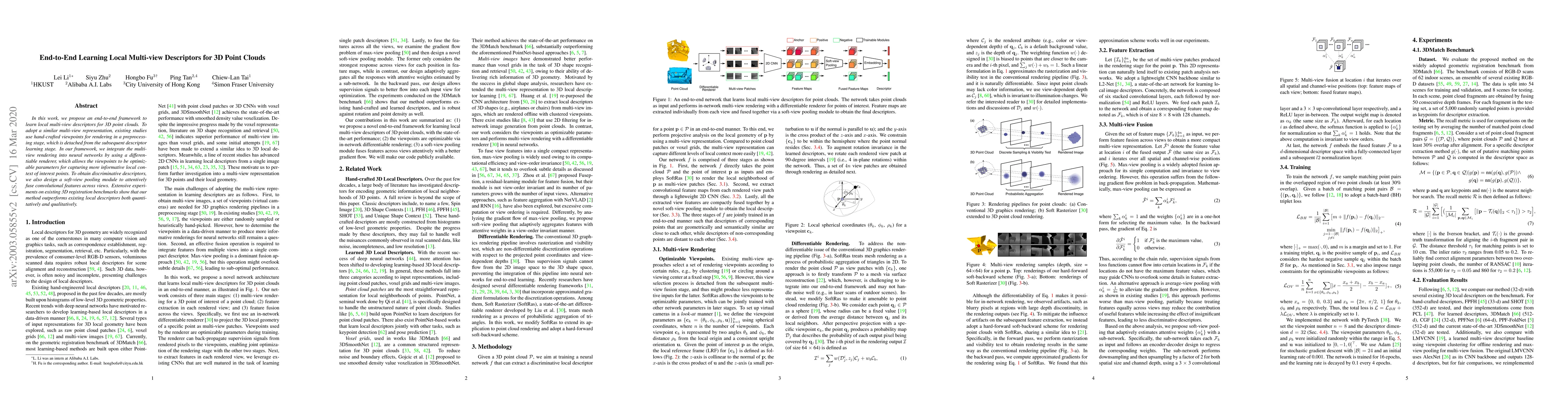 This paper presents an end-to-end learning framework that integrates multi-view rendering into neural networks to learn local descriptors for 3D point clouds, using a differentiable renderer and a soft-view pooling module. Experimental results demonstrate superior performance over existing methods in 3D registration tasks.