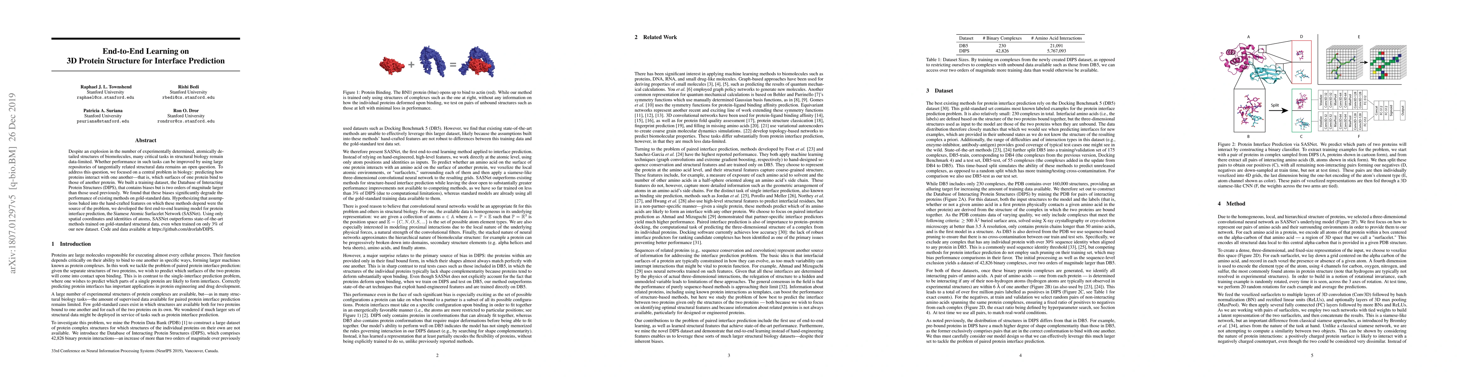 Despite an explosion in the number of experimentally determined, atomically detailed structures of biomolecules, many critical tasks in structural biology remain data-limited. Whether performance in such tasks can be improved by using large repositories of tangentially related structural data remains an open question. To address this question, we focused on a central problem in biology: predicting how proteins interact with one another---that is, which surfaces of one protein bind to those of another protein. We built a training dataset, the Database of Interacting Protein Structures (DIPS), that contains biases but is two orders of magnitude larger than those used previously. We found that these biases significantly degrade the performance of existing methods on gold-standard data. Hypothesizing that assumptions baked into the hand-crafted features on which these methods depend were the source of the problem, we developed the first end-to-end learning model for protein interface prediction, the Siamese Atomic Surfacelet Network (SASNet). Using only spatial coordinates and identities of atoms, SASNet outperforms state-of-the-art methods trained on gold-standard structural data, even when trained on only 3% of our new dataset. Code and data available at https://github.com/drorlab/DIPS.