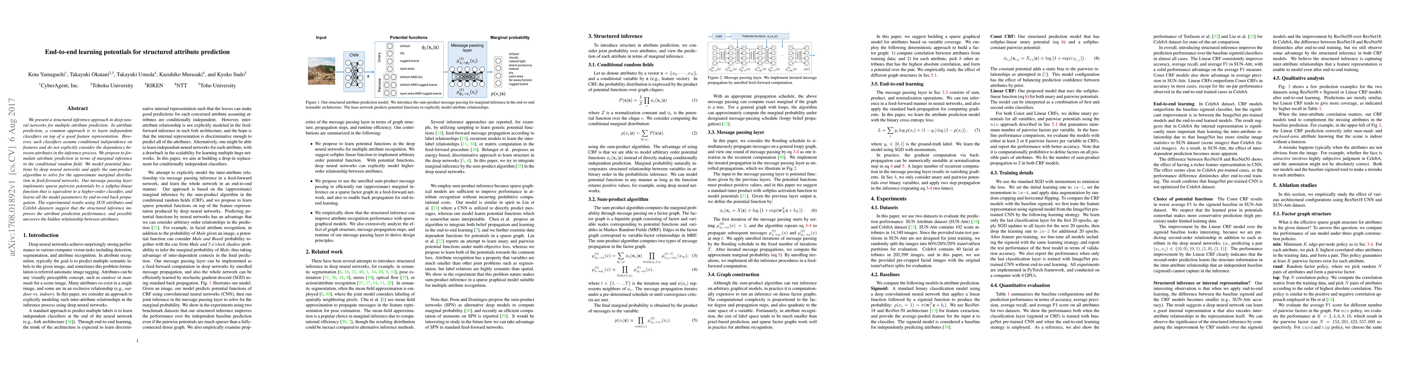 This paper proposes a deep neural network approach using structured inference via conditional random fields for predicting multiple attributes, addressing the limitation of independent classifiers by modeling dependencies between attributes. The method employs end-to-end learning to optimize model parameters and shows improved performance on SUN attributes and CelebA datasets.