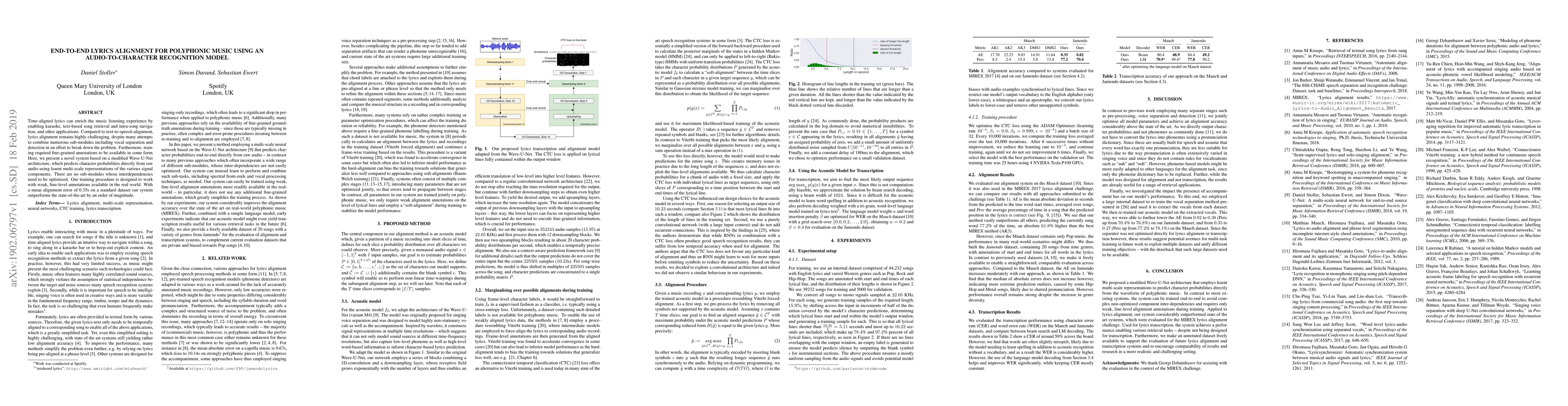 This paper introduces a novel end-to-end system for aligning lyrics to polyphonic music using a modified Wave-U-Net architecture, achieving superior alignment accuracy with minimal reliance on fine-grained annotations. The system outperforms existing methods by an order of magnitude, demonstrating its effectiveness for karaoke and song retrieval applications.
