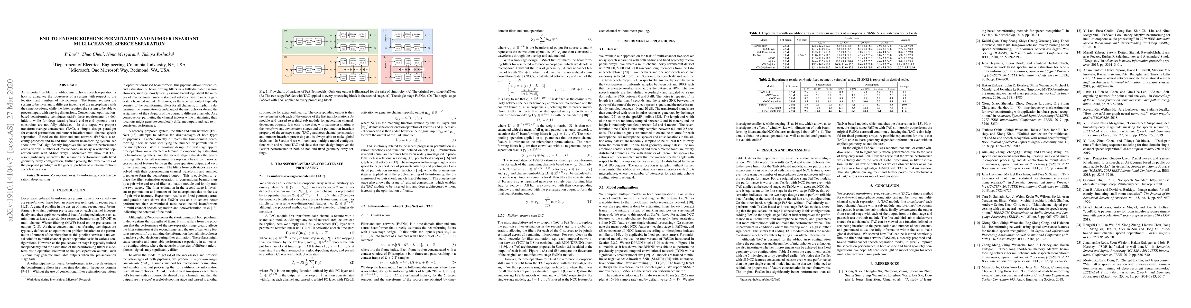 This paper proposes a transform-average-concatenate (TAC) paradigm to enhance end-to-end microphone permutation and number invariant multi-channel speech separation, significantly improving performance over conventional methods in both ad-hoc and fixed geometry microphone setups.