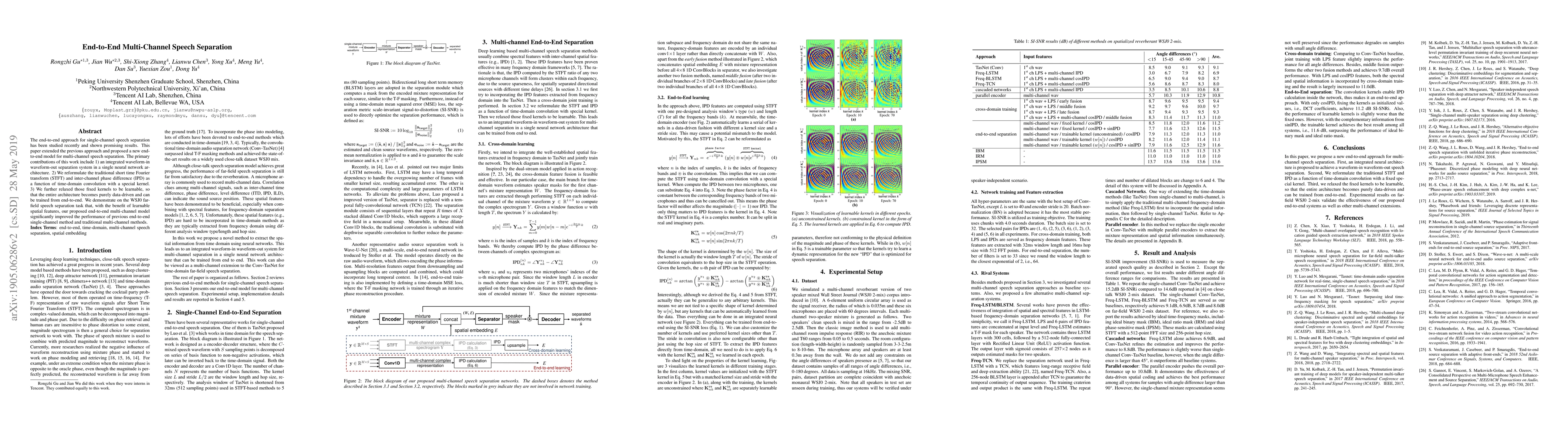 This paper proposes an end-to-end neural network for multi-channel speech separation, integrating a waveform-in waveform-out system, reformulating STFT and IPD with time-domain convolution, and making kernels learnable for data-driven training. The model significantly outperforms both single-channel end-to-end and traditional multi-channel methods on the WSJ0 far-field task.