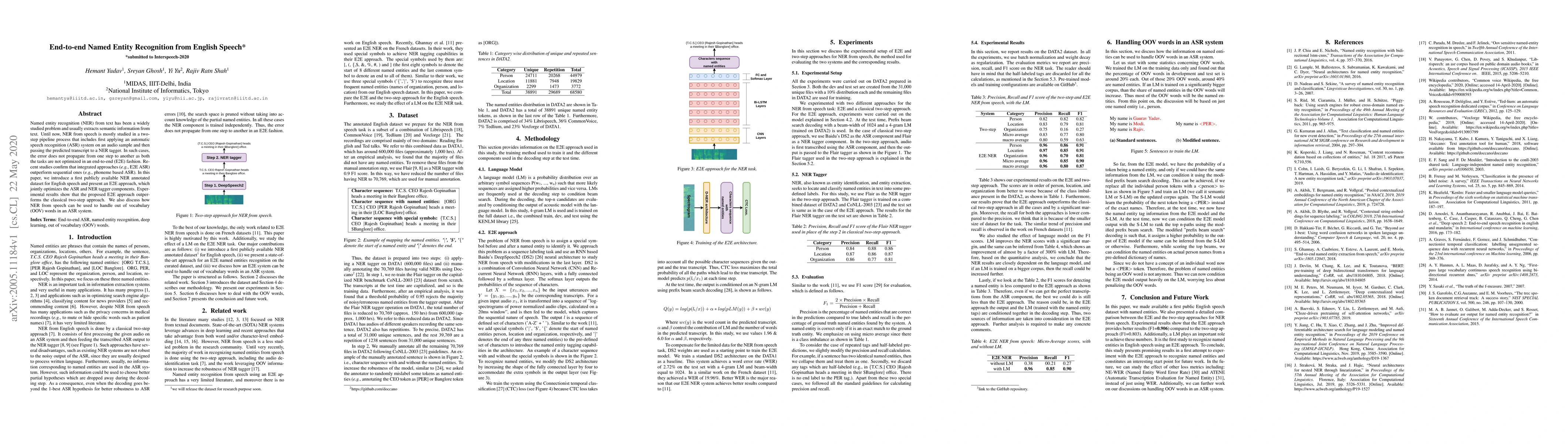 This paper introduces a publicly available dataset for named entity recognition (NER) from English speech and proposes an end-to-end approach that jointly optimizes automatic speech recognition (ASR) and NER, outperforming traditional two-step methods. The study also explores the application of NER in handling out-of-vocabulary words in ASR systems.