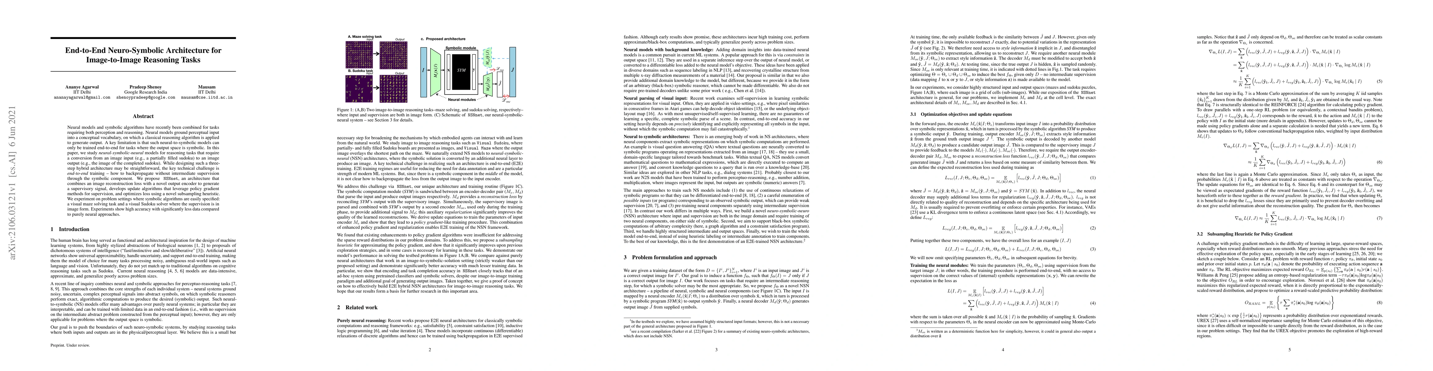 This paper proposes NSNnet, a neuro-symbolic architecture that combines neural and symbolic reasoning for image-to-image tasks, addressing end-to-end training challenges. The model uses image reconstruction and novel output encoding to provide supervision, achieving high accuracy with less data than purely neural methods in visual maze solving and Sudoku completion tasks.