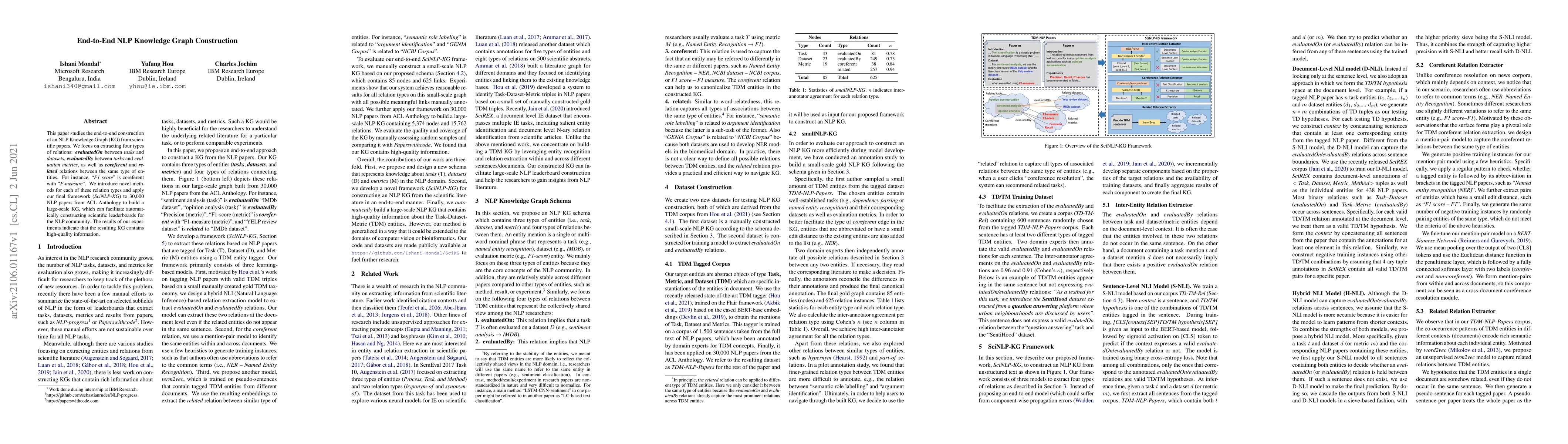 This paper studies the end-to-end construction of an NLP Knowledge Graph (KG) from scientific papers. We focus on extracting four types of relations: evaluatedOn between tasks and datasets, evaluatedBy between tasks and evaluation metrics, as well as coreferent and related relations between the same type of entities. For instance, F1-score is coreferent with F-measure. We introduce novel methods for each of these relation types and apply our final framework (SciNLP-KG) to 30,000 NLP papers from ACL Anthology to build a large-scale KG, which can facilitate automatically constructing scientific leaderboards for the NLP community. The results of our experiments indicate that the resulting KG contains high-quality information.