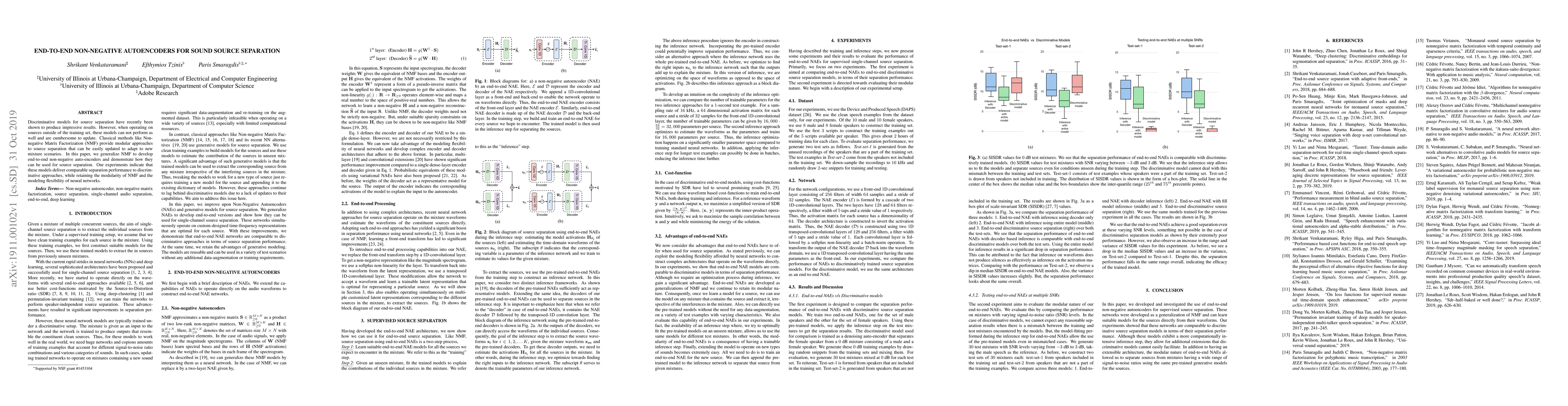 Discriminative models for source separation have recently been shown to produce impressive results. However, when operating on sources outside of the training set, these models can not perform as well and are cumbersome to update. Classical methods like Non-negative Matrix Factorization (NMF) provide modular approaches to source separation that can be easily updated to adapt to new mixture scenarios. In this paper, we generalize NMF to develop end-to-end non-negative auto-encoders and demonstrate how they can be used for source separation. Our experiments indicate that these models deliver comparable separation performance to discriminative approaches, while retaining the modularity of NMF and the modeling flexibility of neural networks.