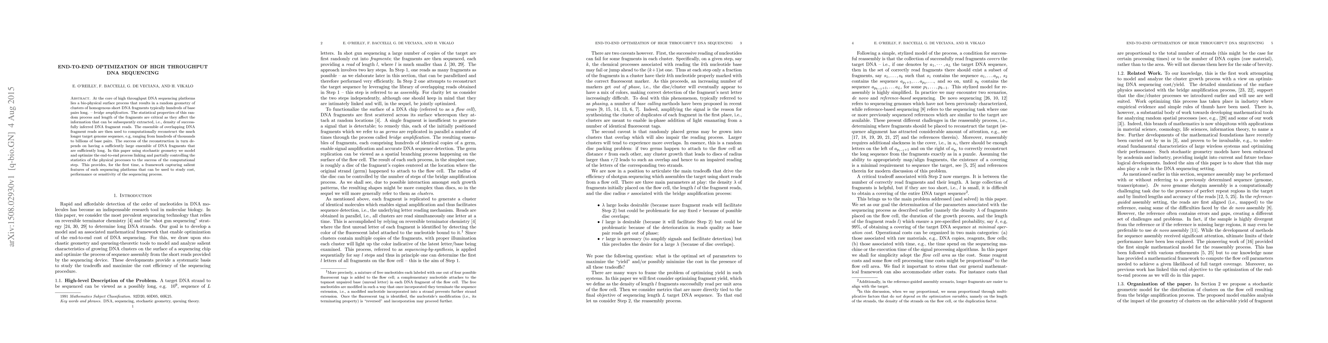 This paper models and optimizes the end-to-end process of high throughput DNA sequencing, linking the bio-physical amplification process to the success of genome reconstruction. It provides a framework for studying the cost, performance, and sensitivity of sequencing platforms.