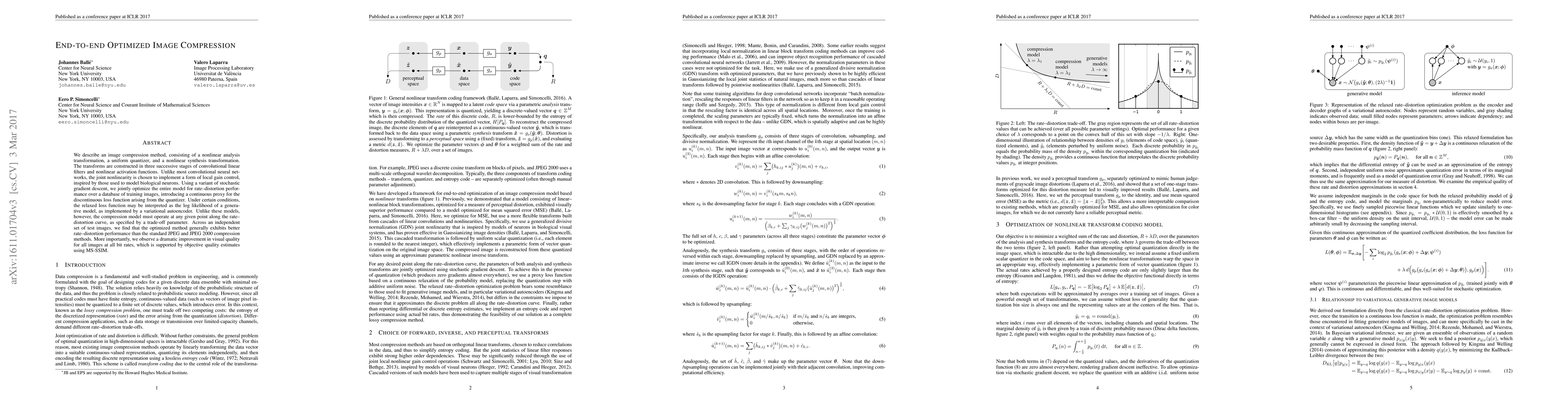 This research introduces an end-to-end optimized image compression method that employs nonlinear transformations and a joint optimization approach, achieving better rate-distortion performance and significantly improved visual quality compared to JPEG and JPEG 2000, as validated by MS-SSIM.