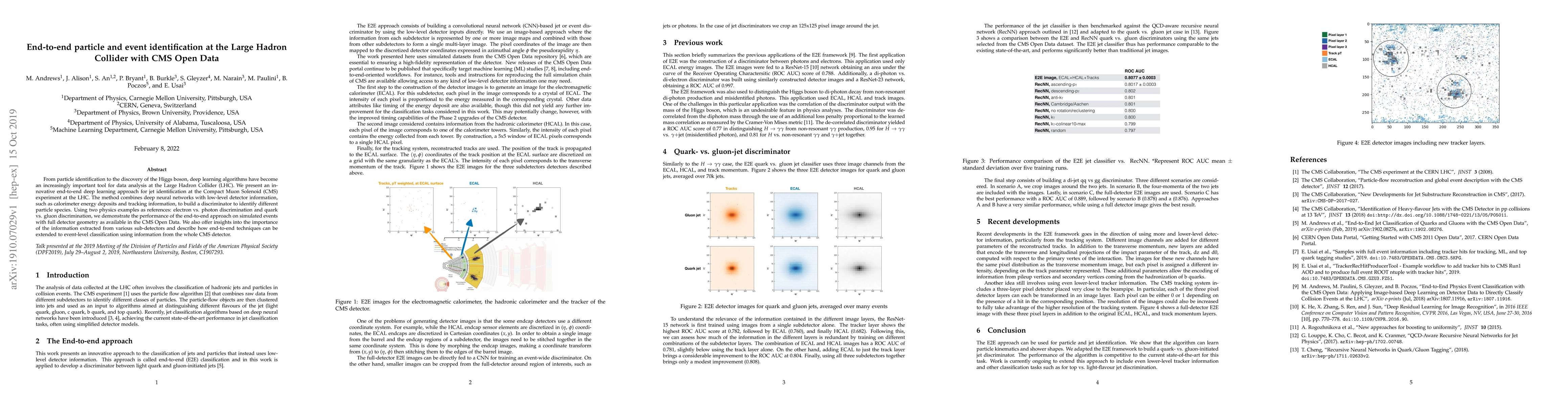 This paper introduces an end-to-end deep learning method for particle identification at the CMS experiment of the LHC, utilizing neural networks combined with low-level detector data. It demonstrates the approach's effectiveness in distinguishing between electron-photon and quark-gluon events using CMS Open Data, highlighting the significance of various detector components.