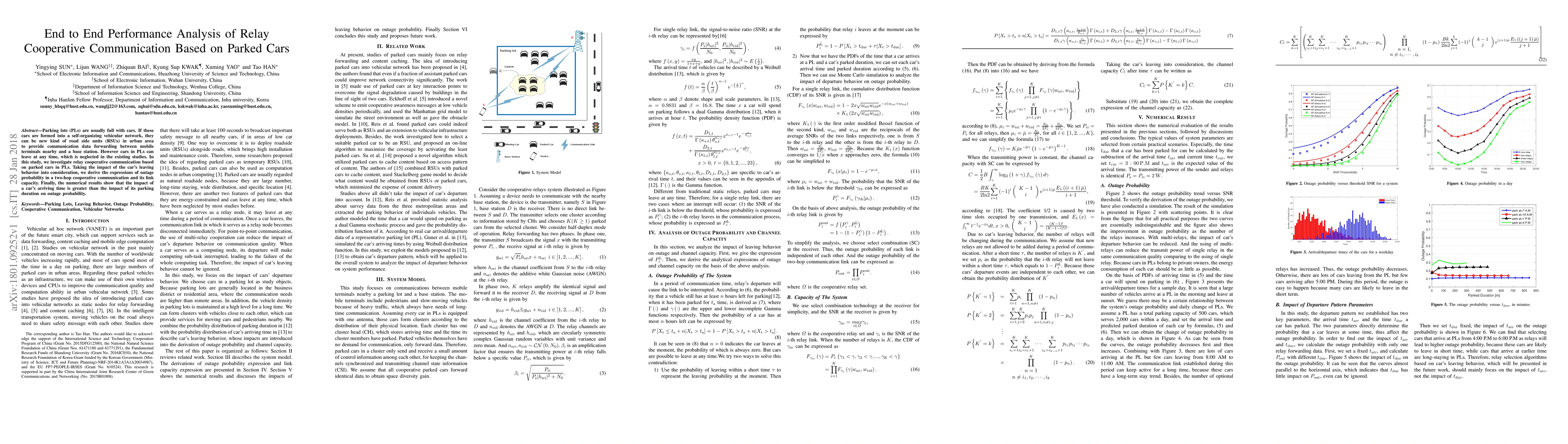 This paper analyzes relay cooperative communication using parked cars in urban parking lots as temporary roadside units. The study derives expressions for outage probability and link capacity, considering the dynamic nature of car arrivals and departures, and finds that a car's arrival time has a more significant impact on outage probability than its parking duration.