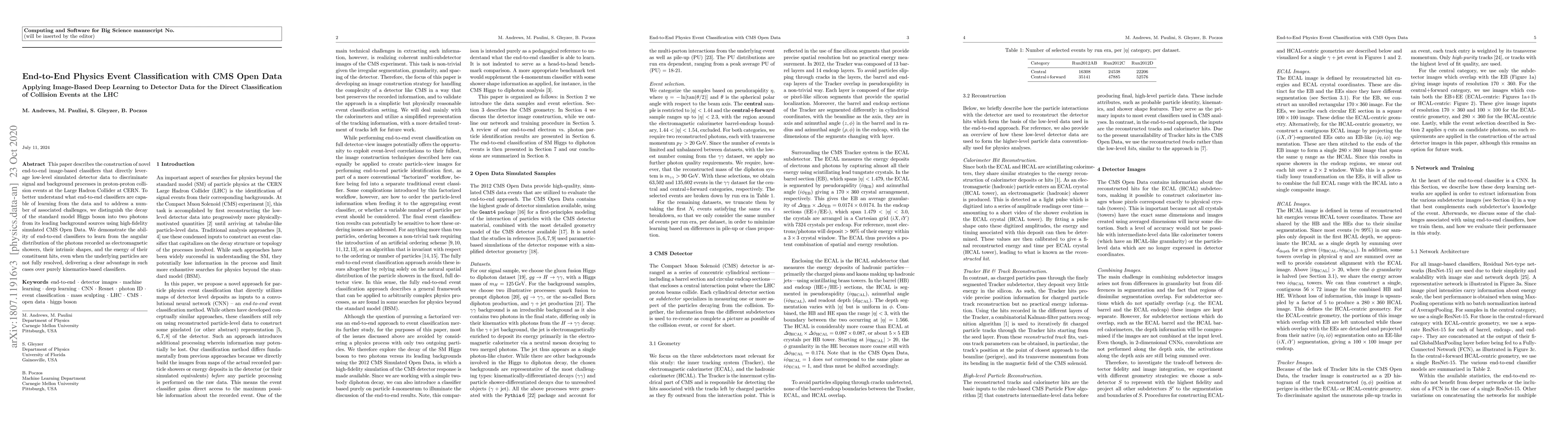 This paper describes the construction of novel end-to-end image-based classifiers that directly leverage low-level simulated detector data to discriminate signal and background processes in pp collision events at the Large Hadron Collider at CERN. To better understand what end-to-end classifiers are capable of learning from the data and to address a number of associated challenges, we distinguish the decay of the standard model Higgs boson into two photons from its leading background sources using high-fidelity simulated CMS Open Data. We demonstrate the ability of end-to-end classifiers to learn from the angular distribution of the photons recorded as electromagnetic showers, their intrinsic shapes, and the energy of their constituent hits, even when the underlying particles are not fully resolved, delivering a clear advantage in such cases over purely kinematics-based classifiers.