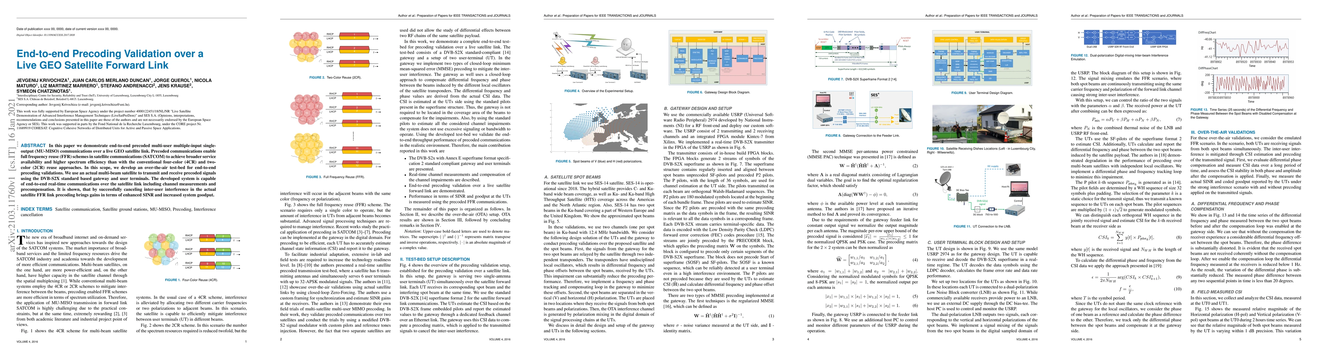 Researchers successfully demonstrated end-to-end precoded MU-MISO communications over a live GEO satellite link, achieving improved SINR and system goodput through interference cancellation.