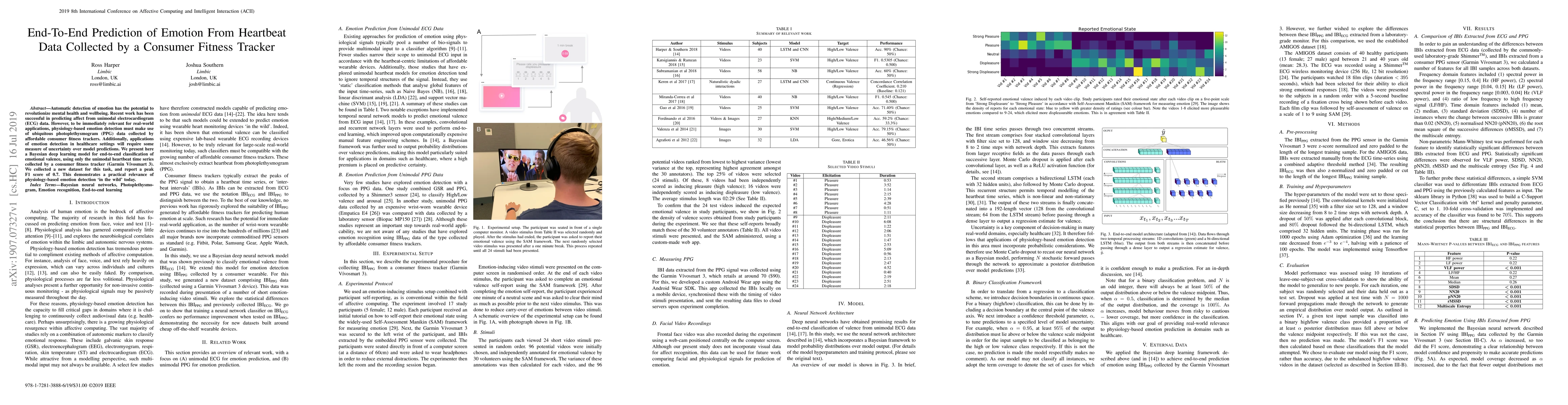 Automatic detection of emotion has the potential to revolutionize mental health and wellbeing. Recent work has been successful in predicting affect from unimodal electrocardiogram (ECG) data. However, to be immediately relevant for real-world applications, physiology-based emotion detection must make use of ubiquitous photoplethysmogram (PPG) data collected by affordable consumer fitness trackers. Additionally, applications of emotion detection in healthcare settings will require some measure of uncertainty over model predictions. We present here a Bayesian deep learning model for end-to-end classification of emotional valence, using only the unimodal heartbeat time series collected by a consumer fitness tracker (Garmin V\'ivosmart 3). We collected a new dataset for this task, and report a peak F1 score of 0.7. This demonstrates a practical relevance of physiology-based emotion detection `in the wild' today.